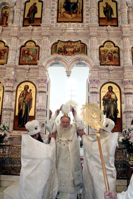 По окончании чина освящения Владыка Ювеналий возглавил Божественную литургию в сослужении благочинных Богородского, Шатурского, Серпуховского, Подольского, Орехово-Зуевского, Егорьевского, Павлопосадского, Видновского церковных округов, настоятелей Высоцкого, Гуслицкого и Николо-Радовицкого мужских монастырей и сонма богородского духовенства.