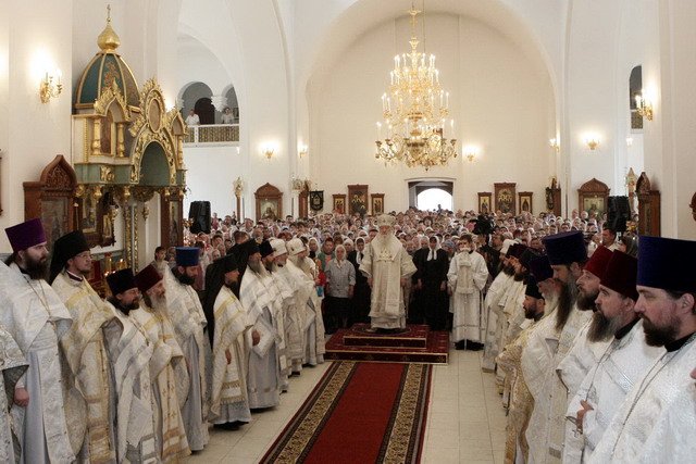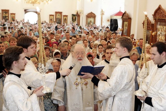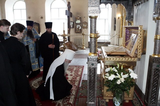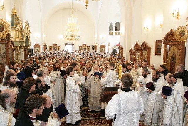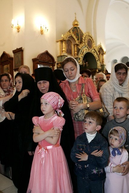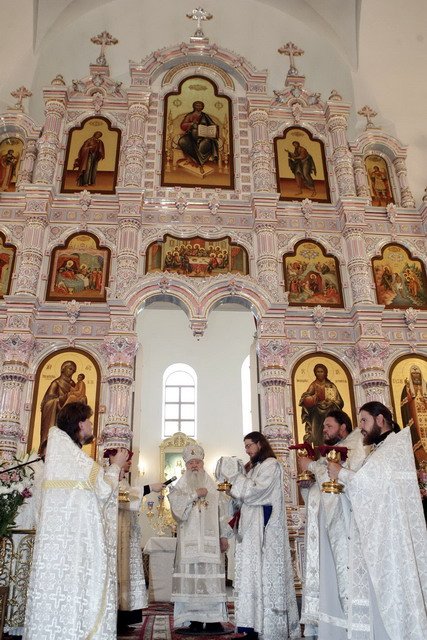 Несмотря на рабочий день, богослужение прошло при большом стечении молящихся. Особо торжественную обстановку в храме создало пение двух хоров, смешанного и мужского составов.