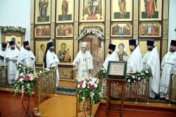 Также, в благословение за вклад в дело восстановления Троицкого храма Владыка Григорий передал от митрополита Ювеналия в дар икону Живоначальной Троицы главе попечительского совета храма