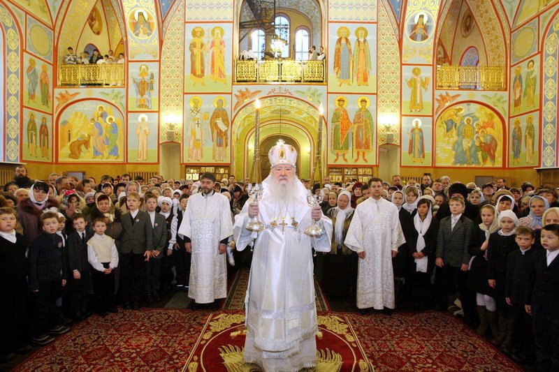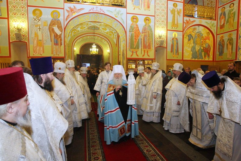 Я также хотел напомнить, что сегодня вторая годовщина со дня блаженной кончины Предстоятеля нашей Церкви — Святейшего Патриарха Алексия, и мы за Божественной литургией вознесли молитву о упокоении его души.