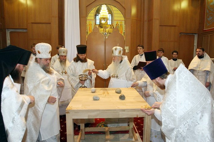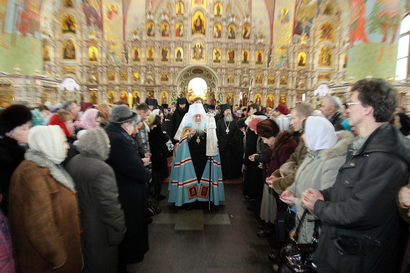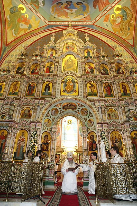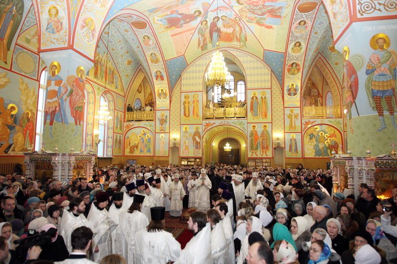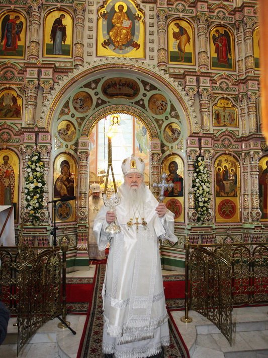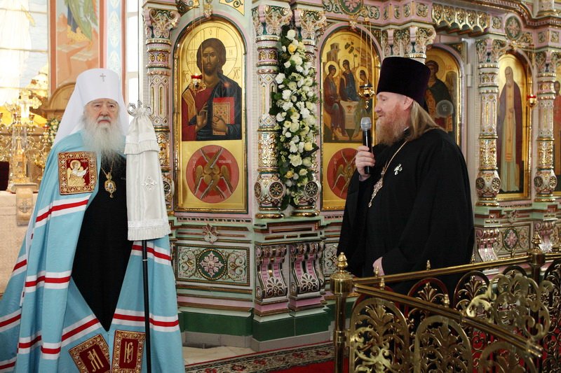 Дорогой наш Владыка, прошло 20 лет, как здесь совершается богослужение, и наконец этот величественный собор освящен. Смиренно благодарю Вас, дорогой Владыка, за то послушание, которое Вы доверили мне и моим предшественникам: протоиерею Алескандру Семенову и протоиерею Сергию Решетняку, — служить и трудиться в этом храме. Сегодня мы вместе — и прихожане, и благодетели, и руководство района и города, благодарим Вас, собор архиереев и духовенство, за то великое освящение, которое Вы совершили, и испрашиваем у Вас благословения на дальнейшие труды. И также в дар хотим преподнести Вам икону Святой Троицы».
