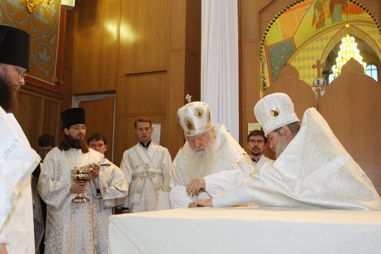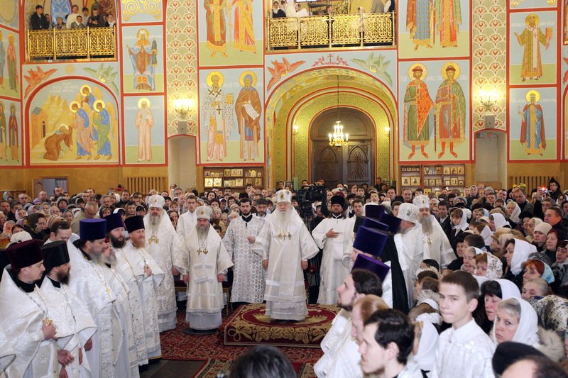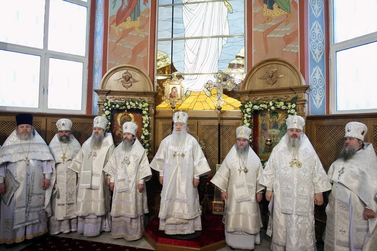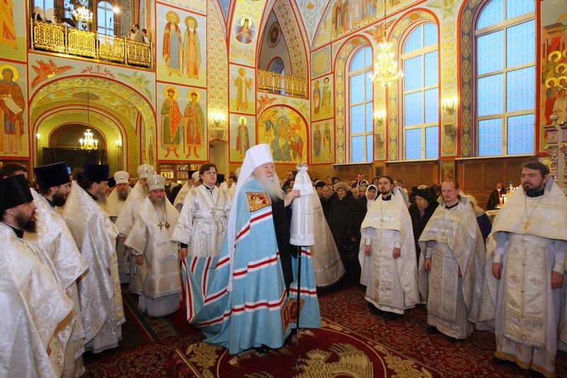 «Возлюбленные и дорогие братья архипастыри, дорогой отец настоятель, благочинный Щелковского округа, всечестные отцы, возлюбленные и дорогие братья и сестры. Я горячо и сердечно поздравляю Вас с этим великим для нас историческим событием — восстановлением, реставрацией Троицкого собора и его великим освящением.