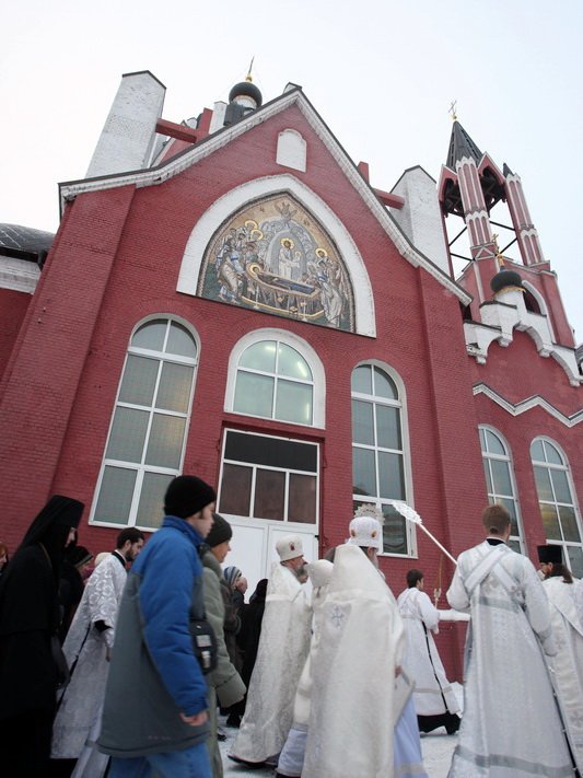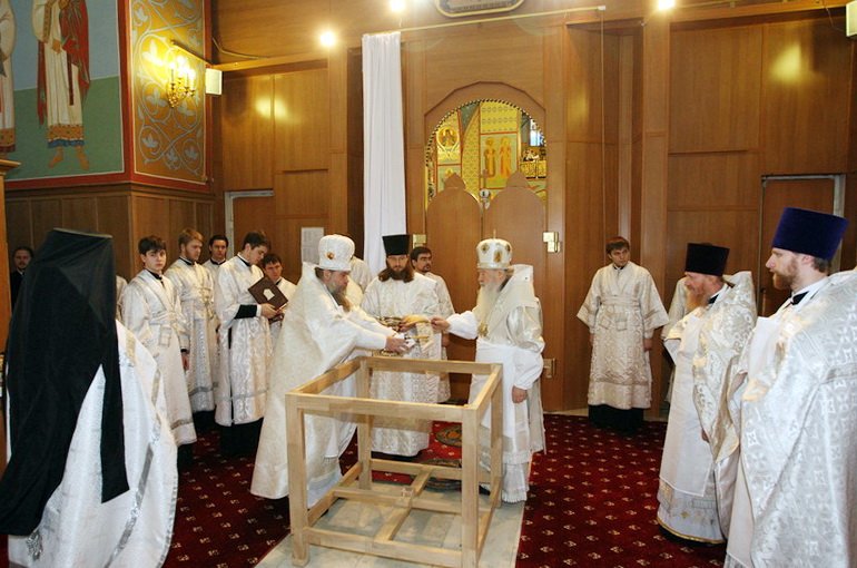 После торжественного обеда Владыка Ювеналий с архипастырями, духовенством и почетными гостями посетил храм в честь иконы Божией Матери «Спорительница хлебов», расположенной на территории