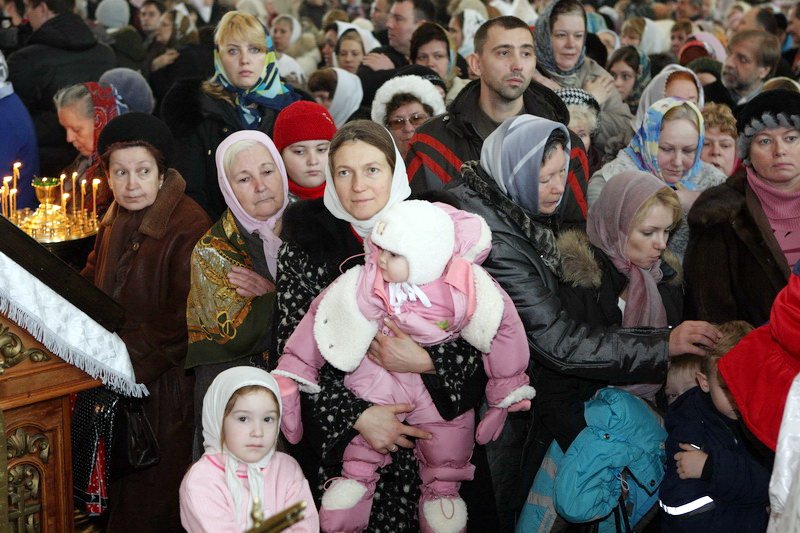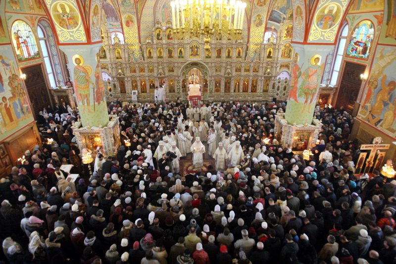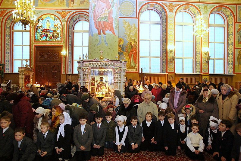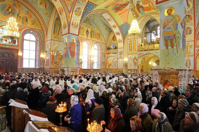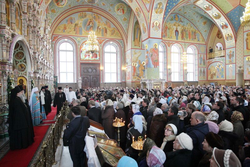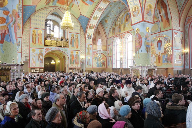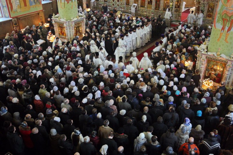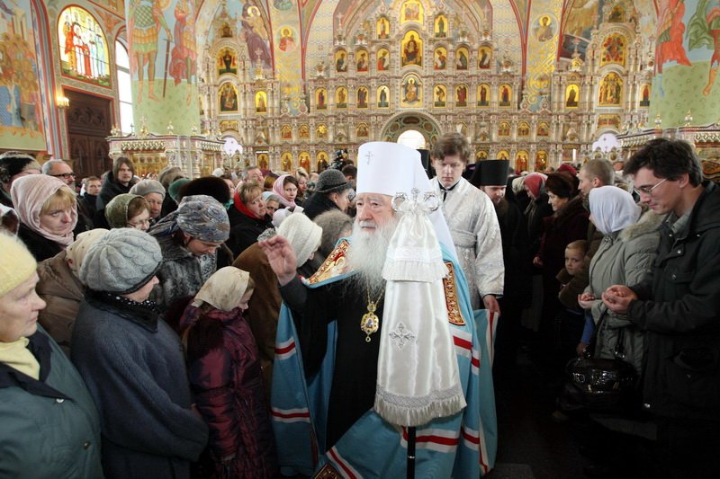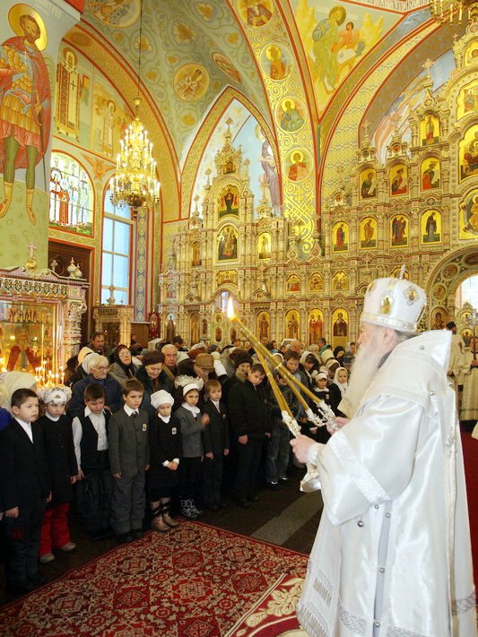 Множество прихожан стремилось получить архипастырское благословение. Казначей собора