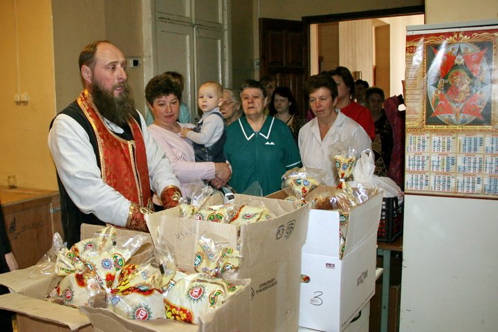 В Светлый понедельник, 25 апреля, клирик храма Вознесения Господня священник Игорь Кузьмин встретился с членами объединения творческих людей «Радость творчества» г. Электросталь, поздравил всех с праздником и ответил на многочисленные вопросы, а также с удовольствием познакомился с творчеством народных умельцев. 26 апреля клирик того же храма священник Олег Бураковский поздравил с Воскресением Христовым пенсионеров в Доме дневного пребывания. Перед пожилыми людьми выступили приглашенные Вознесенским приходом заслуженные артисты России — творческий коллектив гармонистов «Русский тембр». В их репертуаре романсы, русские народные песни, песни военных лет. Своим выступлением артисты очень порадовали пенсионеров, получился настоящий праздник. Детский дом «Надежда» и центр «Доверие» посетил 26 апреля клирик храма Вознесения Господня протоиерей Валерий Розанов. Затем в детский дом с благотворительным концертом прибыли баянисты коллектива «Русский тембр». Ребята, которые обычно с трудом могут усидеть на месте более 20 минут, никак не хотели отпускать артистов, предлагая им всевозможные вопросы.