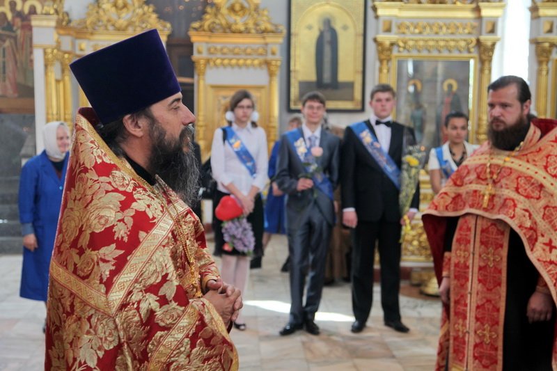 По окончании молебна благочинный Богородского округа протоиерей Михаил Ялов, который является и директором гимназии, окропил собравшихся в храме святой водой и обратился к вчерашним гимназистам с напутственным словом: «Дорогие выпускники! Вы стоите сейчас на очень важном рубеже. Пока вы были детьми, вас воспитывали, контролировали, направляли. Наступает время, когда вам самим нужно будет нести ответственность, причем не только за себя, но и за других, самим принимать решения. Это всегда непросто, и особенно непросто в современном обществе, где представления о добре и зле в значительной степени размыты. Пусть же Господь всегда помогает вам нести это бремя и делать в жизни правильный выбор! Желаю вам помощи Божией на дальнейшем жизненном пути. Не забывайте, что двери храма всегда открыты для каждого из вас. Да благословит вас милостивый Господь!»