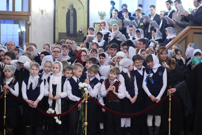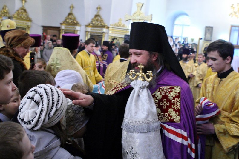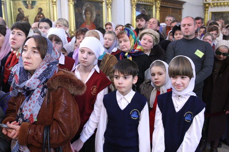 Несмотря на пронизывающий ветер на церковное торжество собралось множество богомольцев. Люди начали сходиться с самого раннего утра, еще затемно, и когда в половине седьмого храм был открыт, его сразу же заполнили верующие. Просторный Богоявленский собор не мог в этот день вместить всех желающих, поэтому богослужение транслировалось на пятиметровый экран, установленный на территории собора.