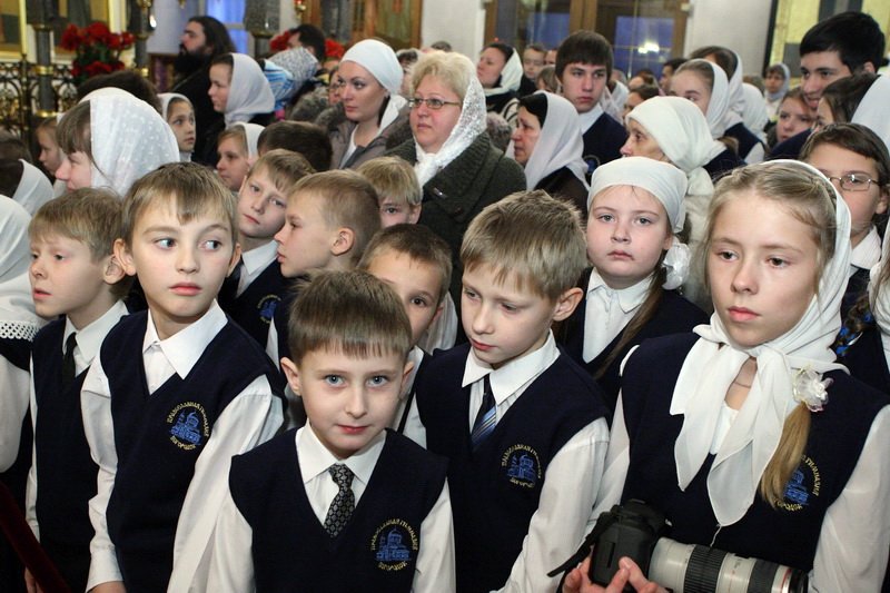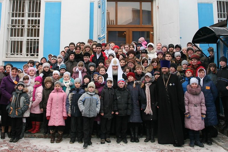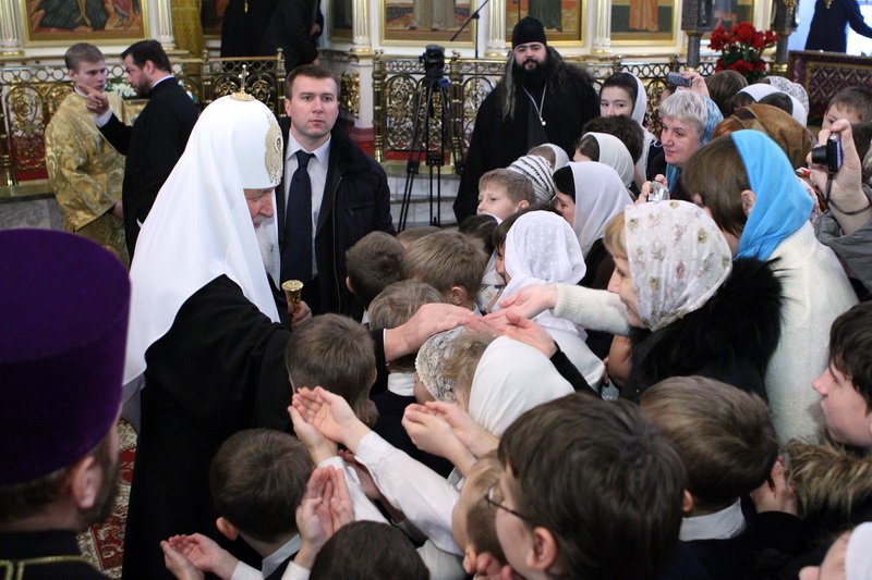 В дар собору Святейший Владыка передал Казанскую икону Божией Матери. Все богомольцы получили иконки священномученика Константина Богородского с первосвятительским благословением. На соборной паперти Святейший Патриарх сфотографировался на память с православными гимназистами.