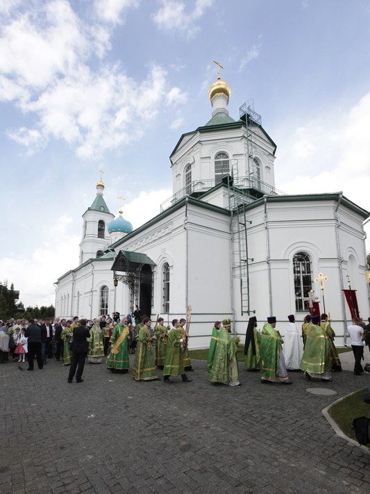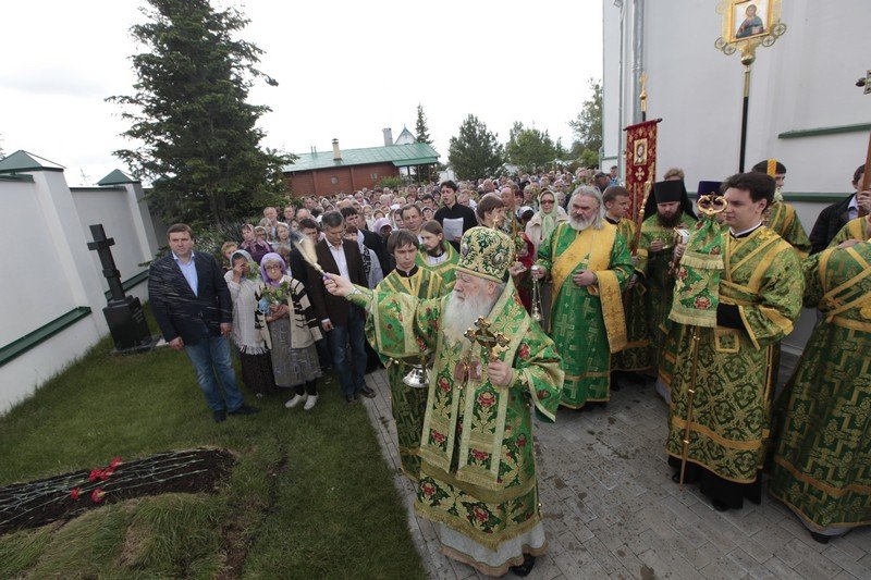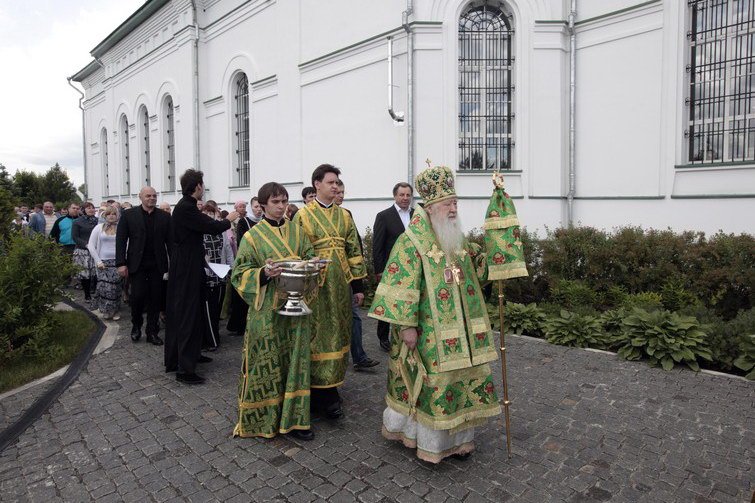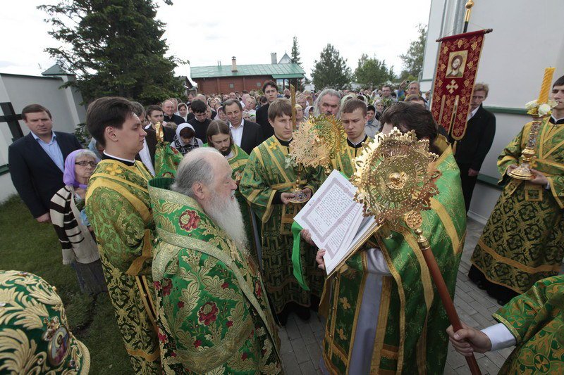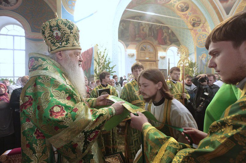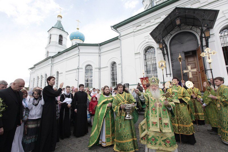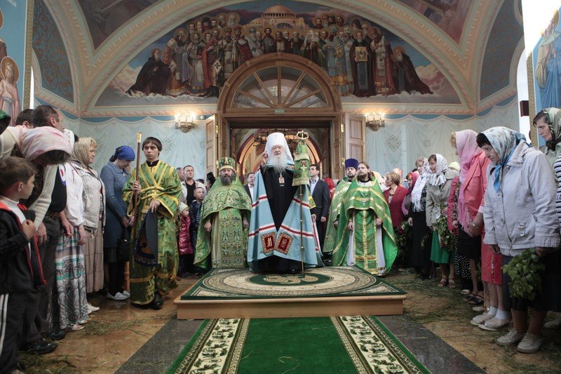 И вас всех, возлюбленные, я поздравляю с днем Святой Пятидесятницы, днем сошествия Святого Духа на апостолов. Причастников и причастниц поздравляю с принятием Святых Христовых Таин. Сегодня в жизни Церкви исторический день, потому что мы считаем, что с сошествием Святого Духа можно говорить о дне рождения на земле Святой Христовой Церкви. Пока Господь был на земле, Он Сам проповедовал и назидал Своих апостолов. Когда же Он вознесся на небо, через десять дней Дух Святой сошел на апостолов, и видимым проявлением этого благодатного действа была способность обратиться с проповедью к народам, которые пришли в этот день во святой град Иерусалим. Каждый слышал на своем наречии проповедь. Это было лишь одно из многих свойств благодати Святого Духа, которую получили апостолы. Господь заповедал им и их преемникам продолжать на земле Его Божественную миссию, научить народы тому, чему Он их учил, что возвещал, и крестить их во имя Отца и Сына, и Святаго Духа (Мф. 28:19). Не человеческим разумом и силой обратили апостолы и их преемники род человеческий ко Христу, ко спасению, но им помогала Божия сила. Сегодня наши пастыри, которые духовно возрождают сердца наших соотечественников, не своей мудростью, не силой разума, а Божией помощью и содействием Святого Духа совершают свое пастырское служение. Я не могу не вспомнить, как два года тому назад, 29 августа, мы собрались здесь на совместную молитву, когда вспоминали страшное время богоборчества и разрушения, вспоминали, что и этот храм был разрушен и находился в руинах до тех пор, пока не взялись за его восстановление. Невозможно тогда было не вспомнить инициативу шараповских крестьян, которые более ста лет назад обращались к Правящему архиерею, испрашивая разрешение построить здесь храм Божий. Они свидетельствовали, что без молитвы, без веры Христовой они буквально дичают и пребывают в греховном состоянии. Вспоминая эти чувства шараповских крестьян, которые находили в молитве, в слове Божием животворящую силу, цель и смысл жизни, мне хочется сказать, что и сегодня мы видим, как это благословенное место буквально воскресло, снова потянулись сюда, в дом Живоначальной Троицы, не только местные жители, но, как мы видим сегодня, из многих и многих мест, в том числе и из Москвы. Люди приехали разделить радость престольного праздника этого замечательного храма. Шарапово своего рода символ возрождения нашей Московской епархии, потому что здесь, как и в сотнях храмов в разных уголках Подмосковья, как и в прежние века, наши сограждане в радости духовной отмечают великий день рождения Церкви Христовой на земле, той Церкви, которая ведет нас ко спасению, той Церкви, которая отвращает нас от греха и порока, той Церкви, которая учит нас любить друг друга и служить своим ближним до самопожертвования.