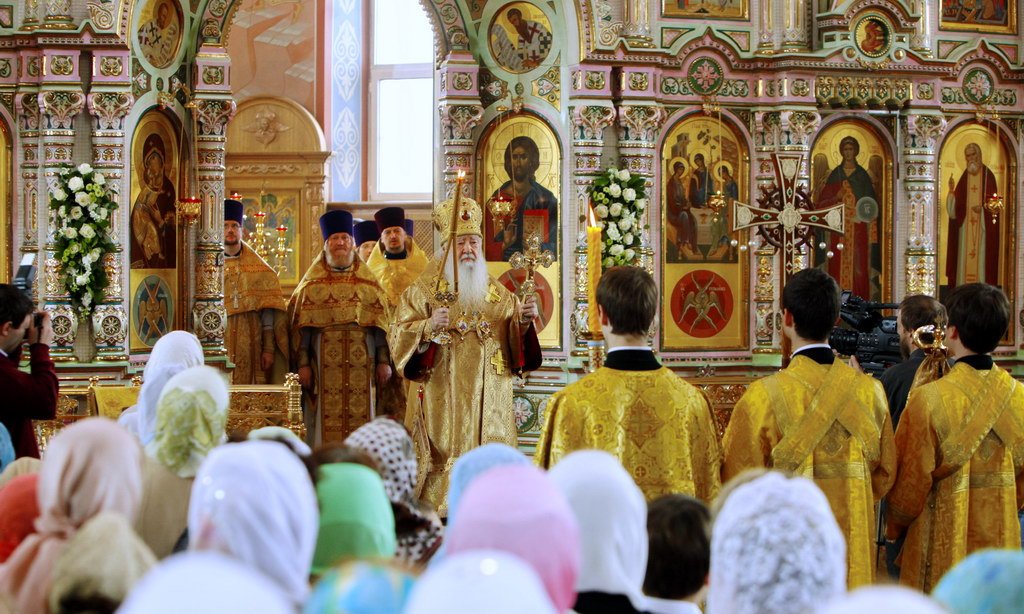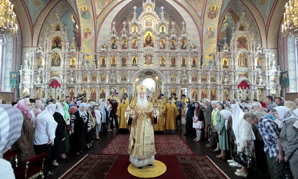 Я поздравляю вас с праздником, с юбилеем Троицкого собора, причастников и причастниц — с принятием Святых Христовых Тайн и на всех вас призываю Божие благословение и предстательство Всех святых, в земле Российской просиявших.