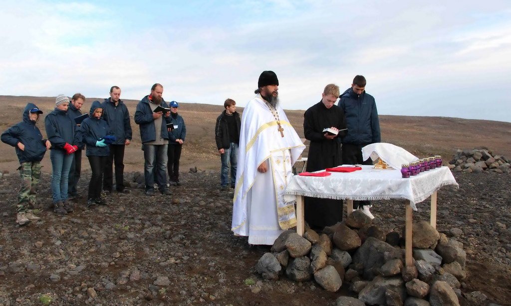 В один из дней была отслужена Божественная литургия под открытым небом на походном Антиминсе. Погодные условия в этот день были очень непростыми — пронизывающий ветер и холод (поблизости был ледник, а в горах лежал снег), но тем более благоговейно и молитвенно прошло богослужение.