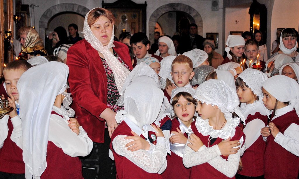 В богослужении участвовали практически все гимназисты (сегодня в гимназии 128 учеников), многие из которых пришли в храм вместе с родителями.