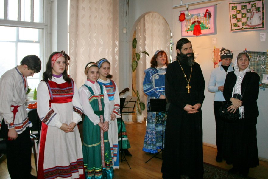 9 января в Ногинском краеведческом музее состоялось открытие Рождественской выставки работ учеников православной гимназии им. сщмч. Константина Богородского. Все собравшиеся, дети с родителями и учителя, пропели тропарь Рождеству Христову и поздравили всех с праздником. Затем выступил клирик Богоявленского собора священник Николай Голубин и пожелал ребятам творческих успехов и ярких работ, благословив всех на дальнейшее творчество. Далее собравшихся поприветствовала и высказала благодарность участникам и организатором выставки за проделанный труд главный хранитель фондов музейного центра С. В. Назина. Затем музыкальный ансамбль при Богоявленском соборе г. Ногинска «Красное солнышко» выступил с концертом: играли на русских народных инструментах и пели народные песни. Ребята и взрослые с большим удовольствием слушали выступление. Затем дети читали стихи. Т. Н. Андросова, руководитель иконописной мастерской, поздравила ребят с Рождеством Христовым. Руководитель детского творческого кружка при Богоявленском соборе г. Ногинска «Умелые руки» Л. В. Голендерова рассказала о различных техниках, которые воспитанники кружка применяли в своих работах: батик, роспись по ткани, машинная и ручная вышивка, аппликация, бисероплетение, лепка и др. В завершение праздника ребят пригласили за сладкий стол.