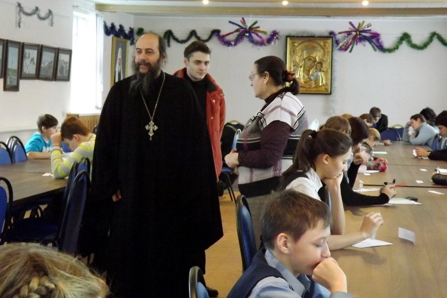 В этот солнечный морозный день в Богоявленском соборе ребят приветствовал благочинный Ногинского округа протоиерей Михаил Ялов. В своем напутственном слове он заметил, что победа в первом туре далась нелегко — вопросы были непростые, а, порой, даже каверзные.