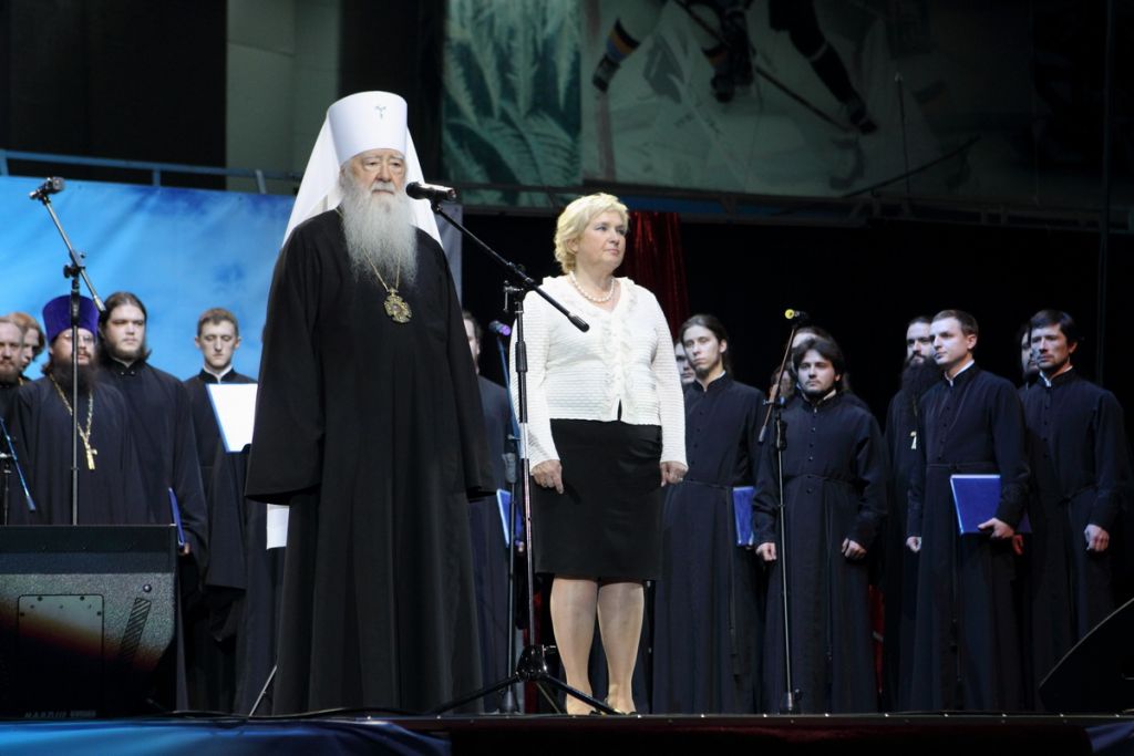 По завершении сценического действа участников открытого урока и гостей приветствовали Управляющий Московской епархией митрополит Крутицкий и Коломенский Ювеналий и первый заместитель председателя Правительства Московской области