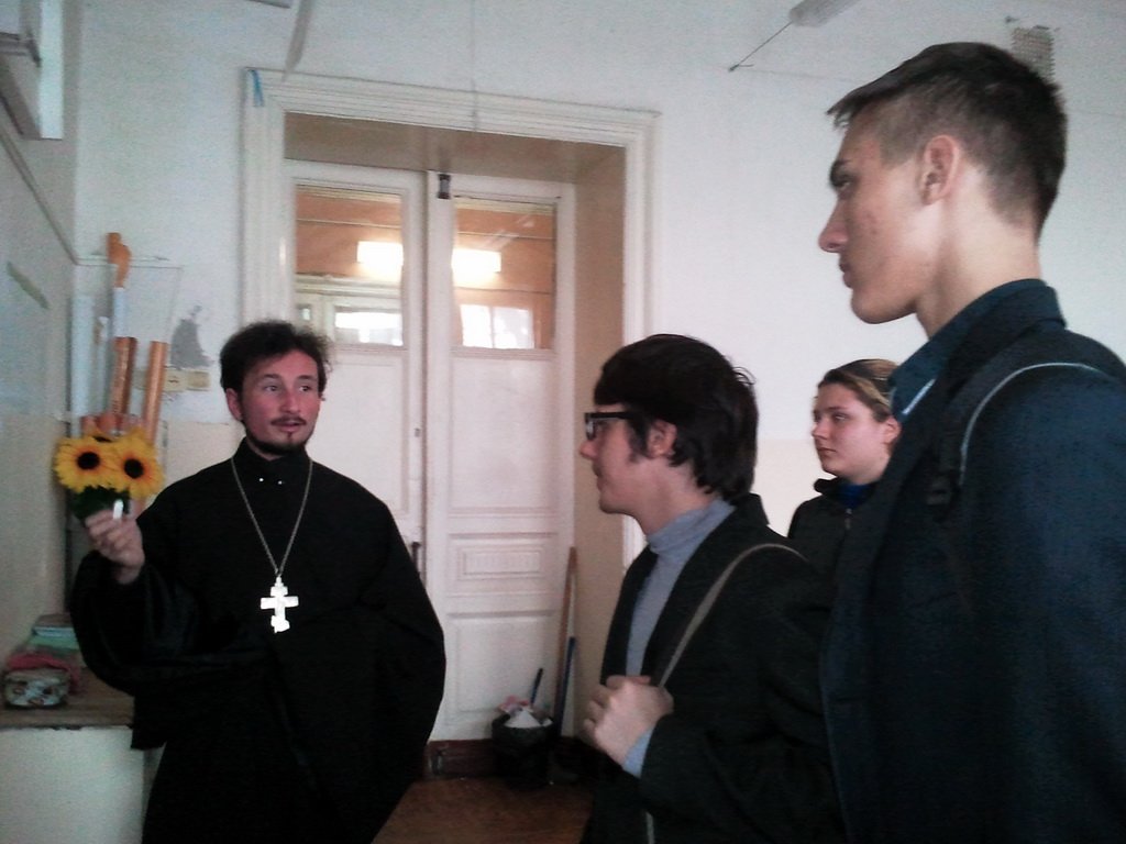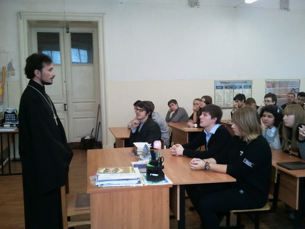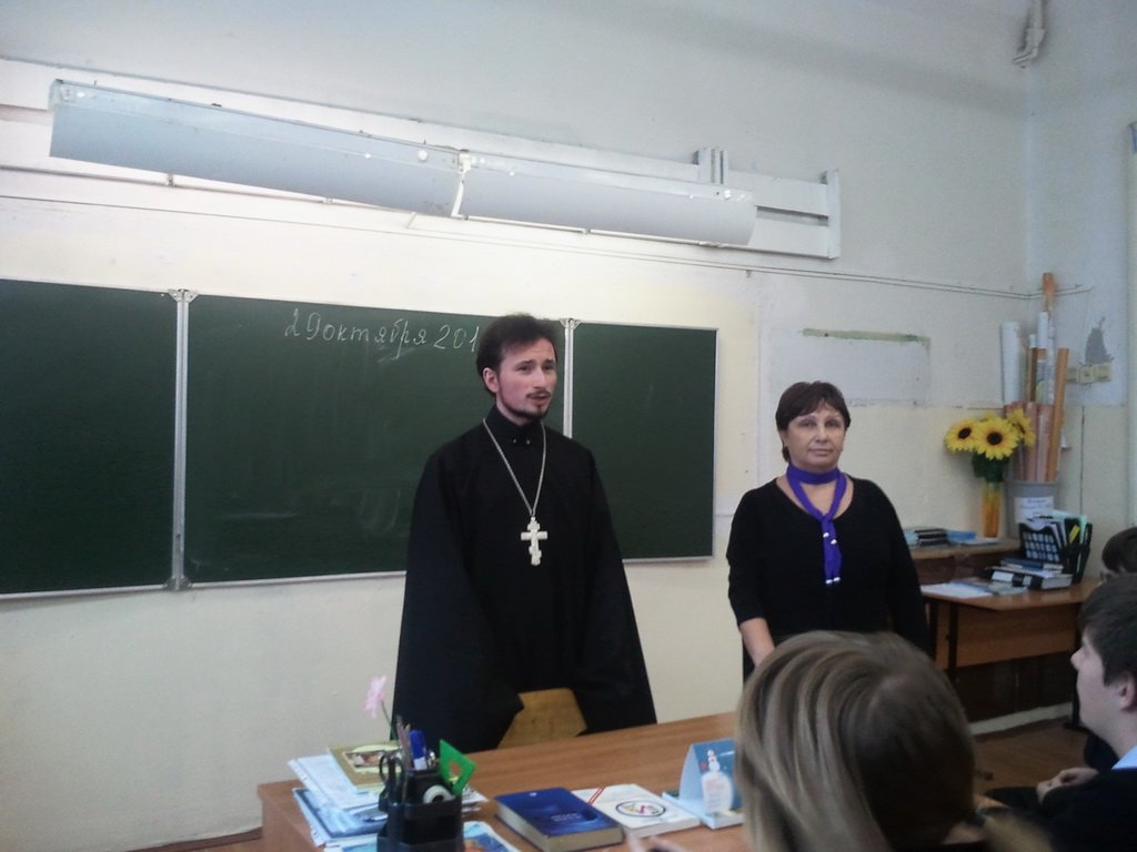 29 октября в общеобразовательной школе № 1 г. Орехово-Зуево состоялась встреча ответственного за религиозное образование и катехизацию в благочинии священника Владислава Решетникова с учениками 9-х, 10-х и 11-х классов. В ходе встречи отец Владислав представил юношам и девушкам рассказ о духовно-нравственном состоянии современного общества, после чего ребята задали целый ряд волнующих их вопросов.