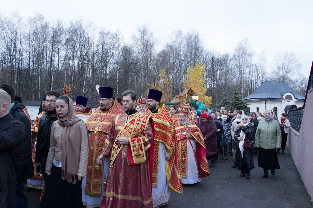 Продолжением Литургии стал Крестный ход, который завершился освящением установленного на территории храма памятника преподобному Серафиму Саровскому. Сюжет для скульптурной композиции, изображающей преподобного Серафима с медведем, взят из жизни: миряне, приходившие к преподобному за духовным советом, видели огромного медведя, которого святой кормил хлебом с рук.