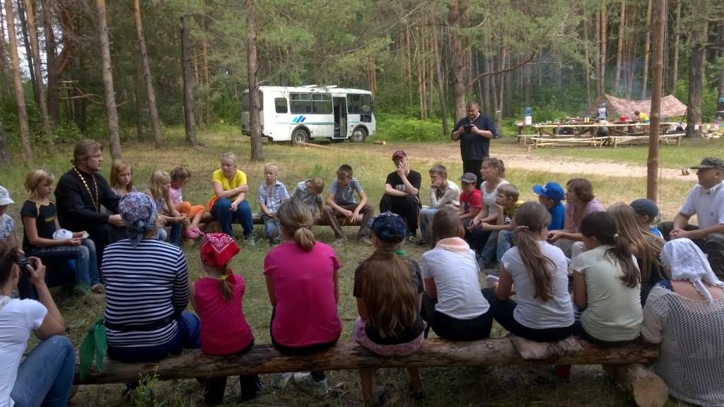 В лагере постоянно находились настоятель Спасо-Преображенского храма села Андреевские Выселки иеромонах Петр (Чернышов) и клирик Никольского храма г. Шатуры священник Александр Боярских. Священнослужители провели с ребятами цикл бесед о христианской вере и ответили на подготовленные детьми вопросы.