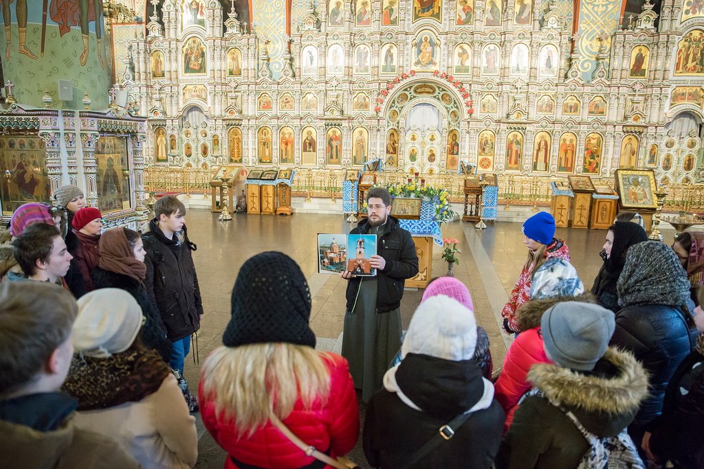 16 февраля, в рамках проведения недели православной молодежи, состоялась экскурсия студентов Московского областного колледжа инновационных технологий в Троицкий собор г. Щелково. С историей строительства и восстановления храма ребят познакомил ответственный за миссионерскую деятельность в благочинии священник Димитрий Третьяков. Студенты познакомились с внутренним убранством храма и поднялись на колокольню.