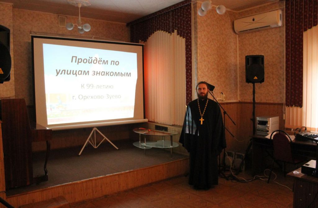 В центральной библиотеке имени А. М. Горького г. Орехово-Зуево состоялась краеведческая конференция с видео-экскурсией «Пройдем по улицам знакомым». На мероприятии присутствовали директор библиотеки Н. Н. Чикалова и клирик Богородицерождественского собора г. Орехово-Зуево священник Виталий Севостьянов.