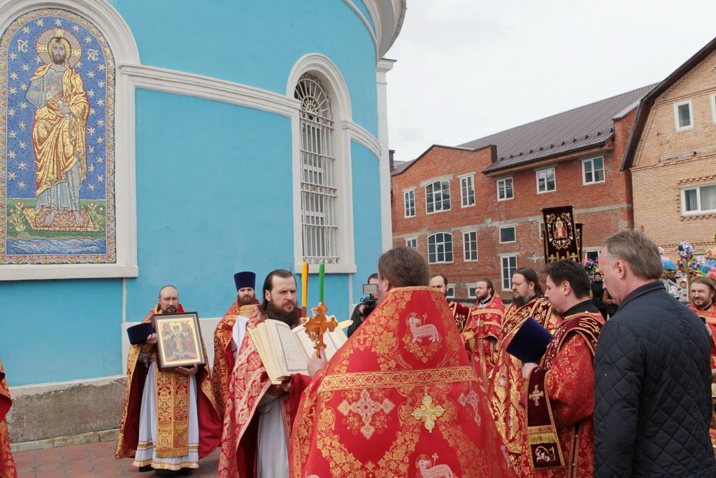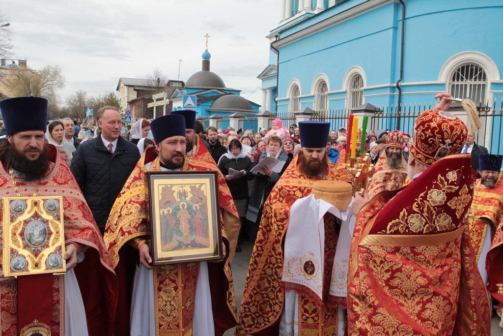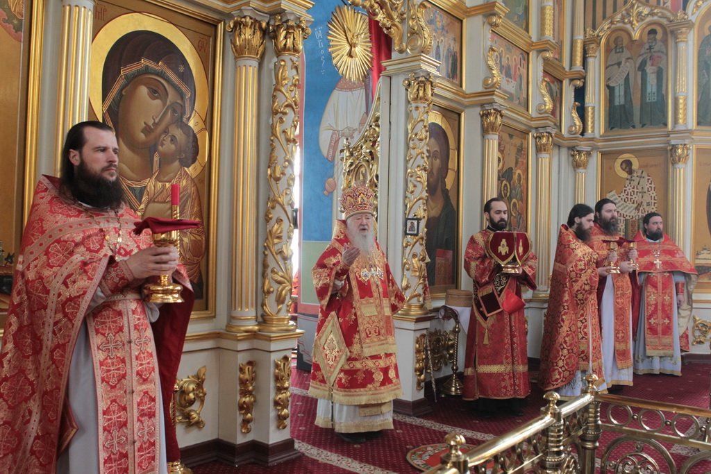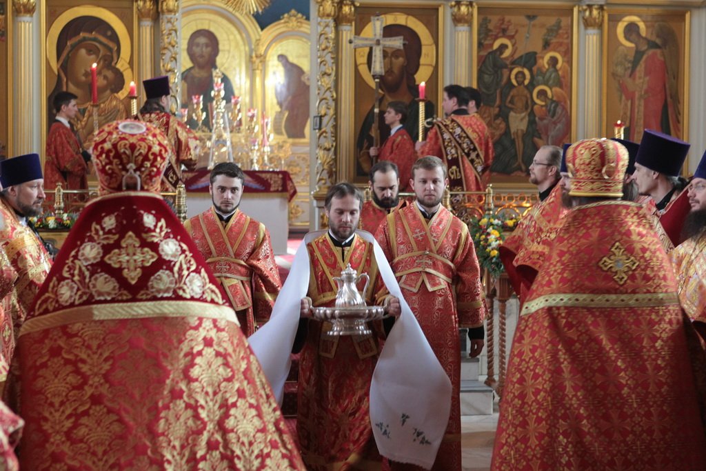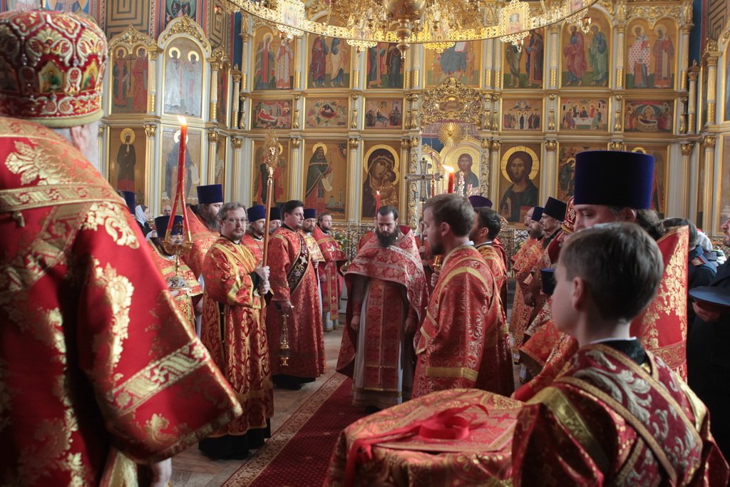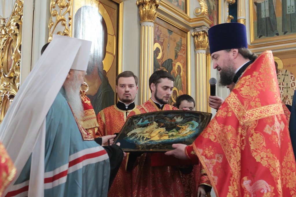 По окончании Литургии и крестного хода протоиерей Марк Ермолаев обратился к Его Высокопреосвященству с приветственным словом: «Ваше Высокопреосвященство, разрешите в этот светлый пасхальный день от имени духовенства Богородского благочиния и прихожан наших храмов приветствовать Вас в Богоявленском соборе жизнеутверждающими словами „Христос воскресе! Воистину воскресе!“ С сыновней признательностью мы благодарим Вас за то, что в этот день Вы совершили здесь Божественную литургию. Мы все причастились Святых Христовых Таин, и Пасха еще ярче отпечатлелась в наших душах и наших сердцах. Позвольте в память о нашей совместной молитве преподнести Вам этот традиционный пасхальный дар — яйцо, которое выполнено в стиле Богородского промысла. На нем есть и изображение собора, в котором мы сейчас пребываем, и традиционные русские узоры. Пусть оно напоминает Вам о сегодняшнем торжестве. Как дополнение — картина, выполненная в том же стиле, с изображением центральных храмов Богородского благочиния: Богоявленского собора и Тихвинского храма».