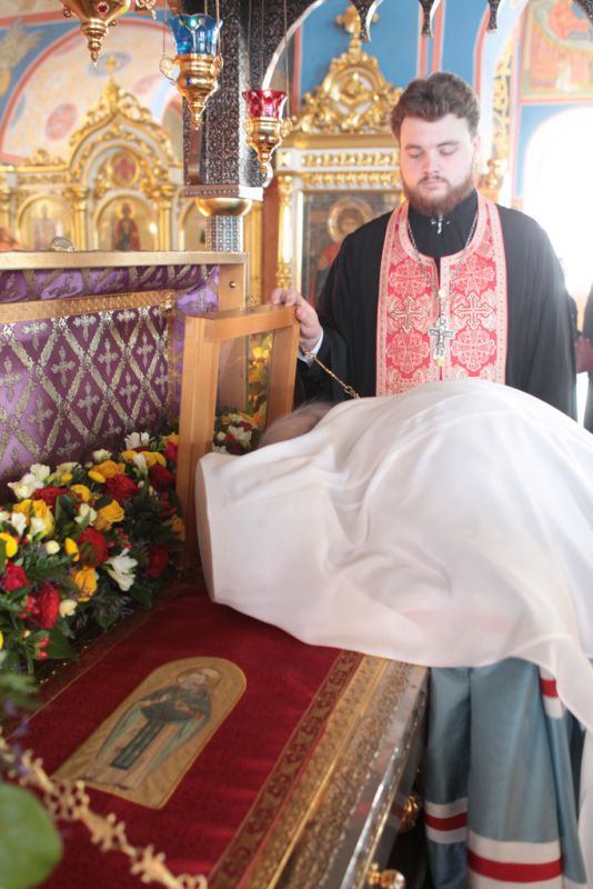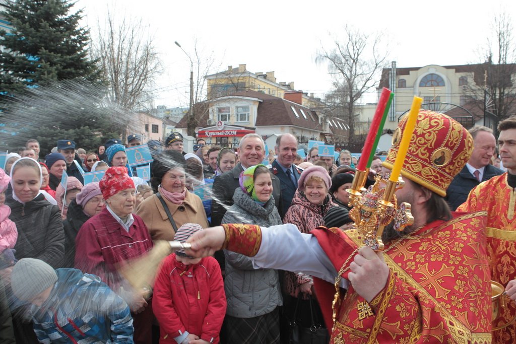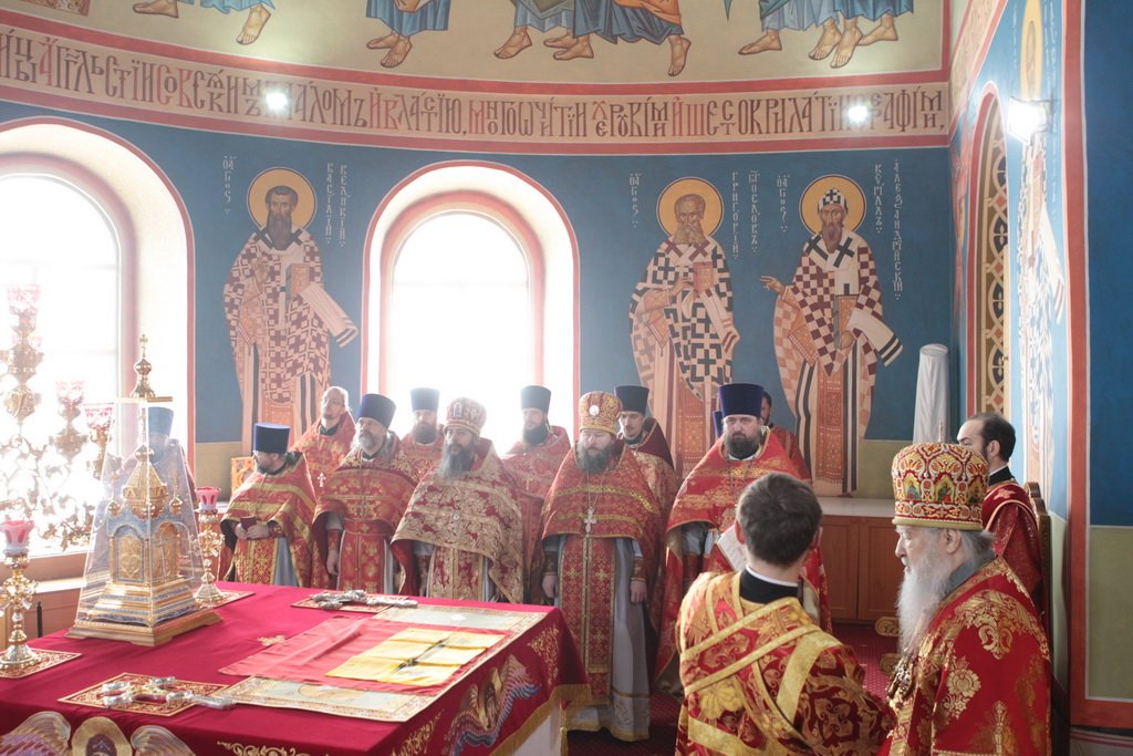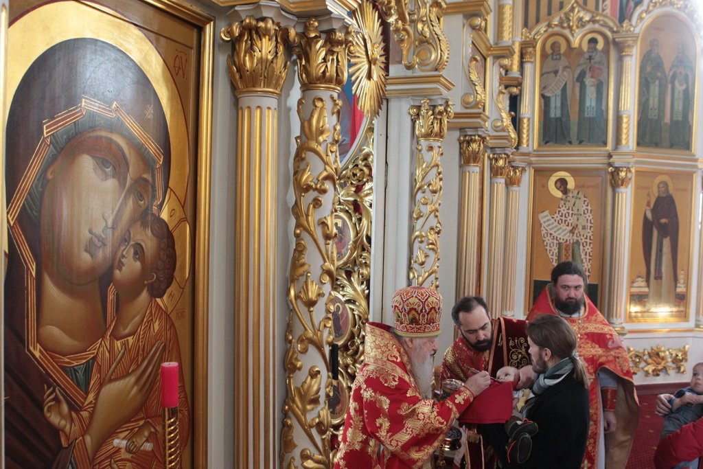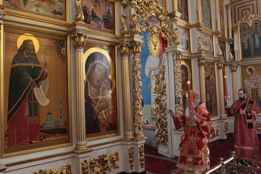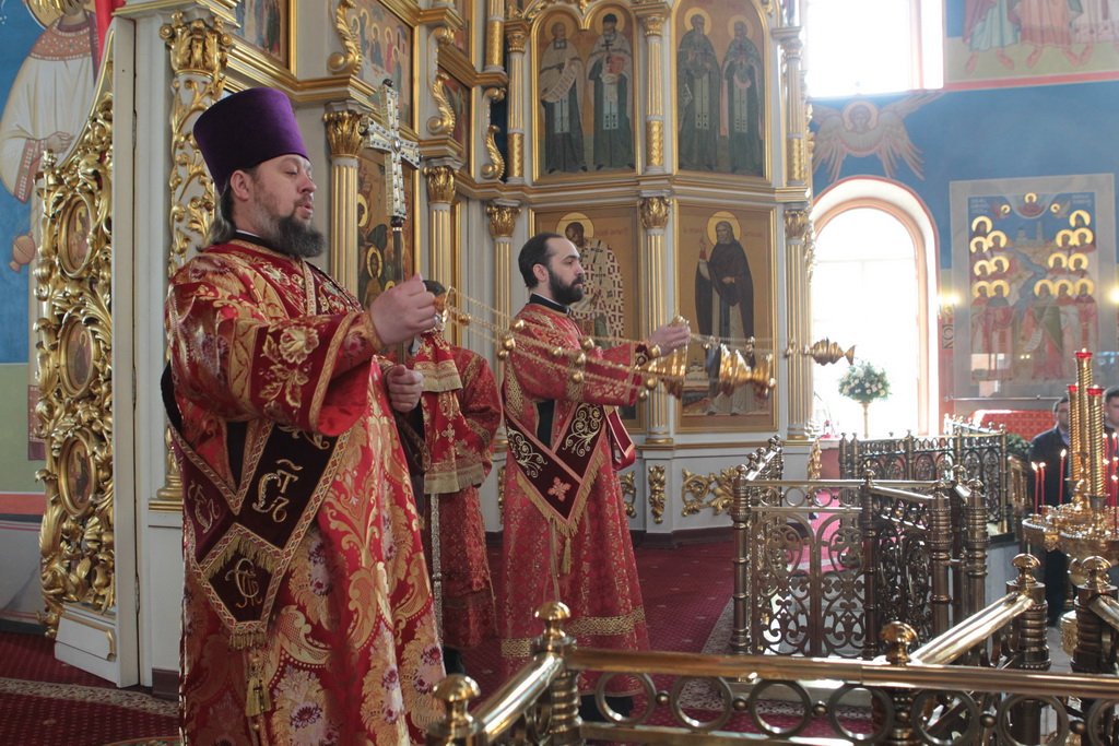 По окончании Литургии и крестного хода протоиерей Марк Ермолаев обратился к Его Высокопреосвященству с приветственным словом: «Ваше Высокопреосвященство, разрешите в этот светлый пасхальный день от имени духовенства Богородского благочиния и прихожан наших храмов приветствовать Вас в Богоявленском соборе жизнеутверждающими словами „Христос воскресе! Воистину воскресе!“ С сыновней признательностью мы благодарим Вас за то, что в этот день Вы совершили здесь Божественную литургию. Мы все причастились Святых Христовых Таин, и Пасха еще ярче отпечатлелась в наших душах и наших сердцах. Позвольте в память о нашей совместной молитве преподнести Вам этот традиционный пасхальный дар — яйцо, которое выполнено в стиле Богородского промысла. На нем есть и изображение собора, в котором мы сейчас пребываем, и традиционные русские узоры. Пусть оно напоминает Вам о сегодняшнем торжестве. Как дополнение — картина, выполненная в том же стиле, с изображением центральных храмов Богородского благочиния: Богоявленского собора и Тихвинского храма».