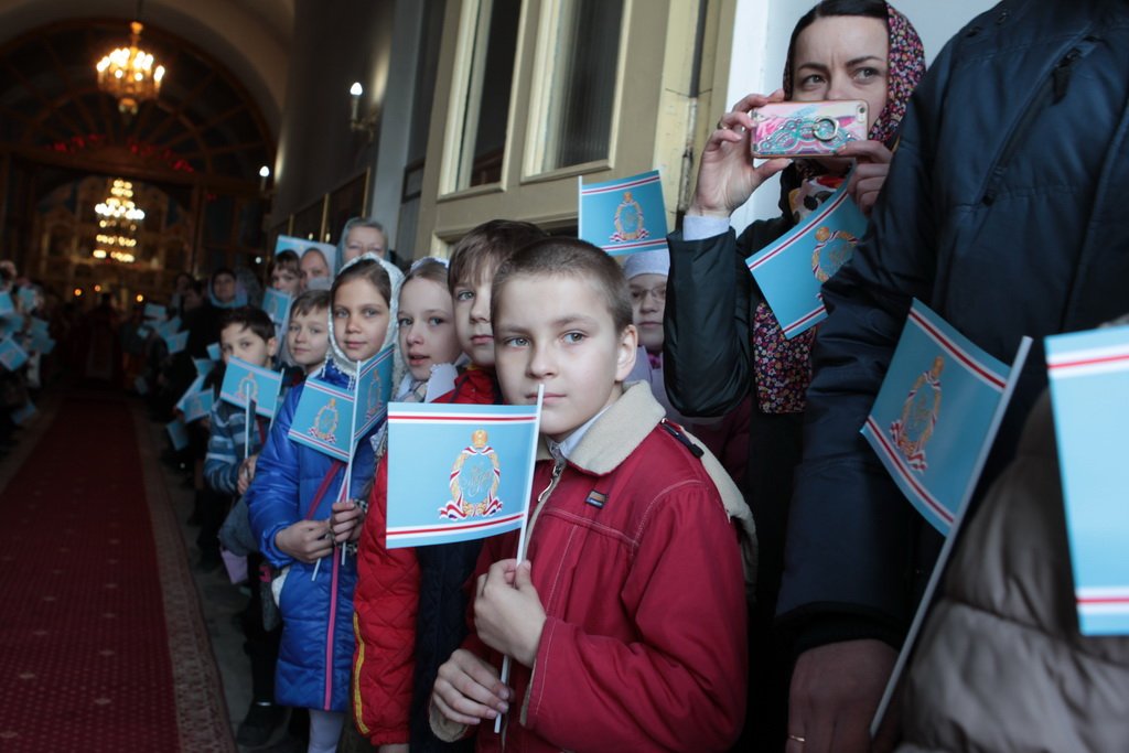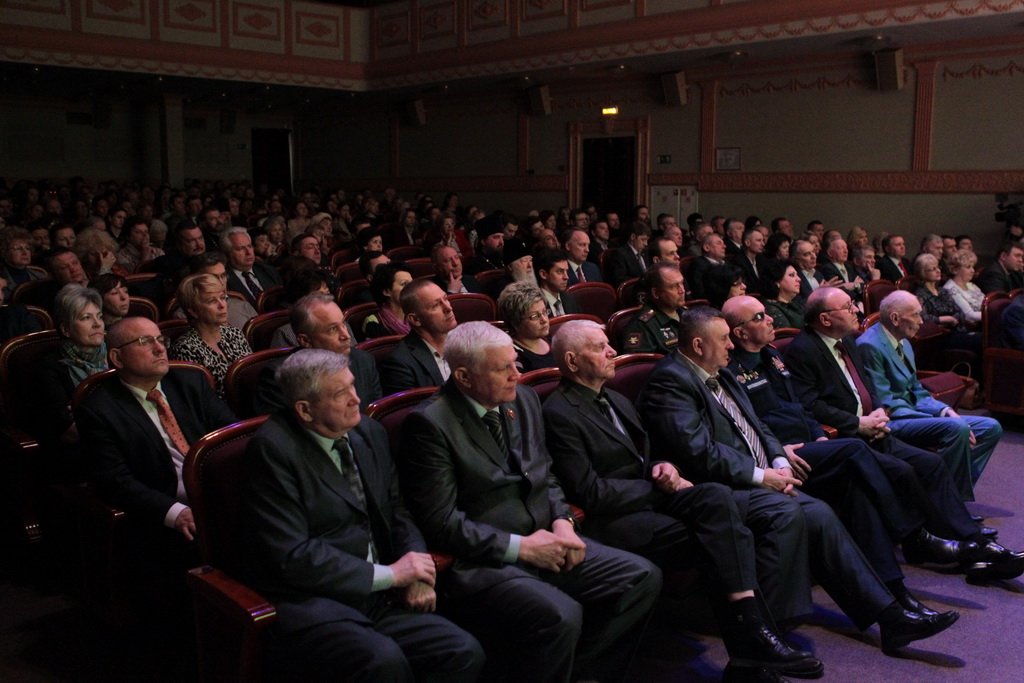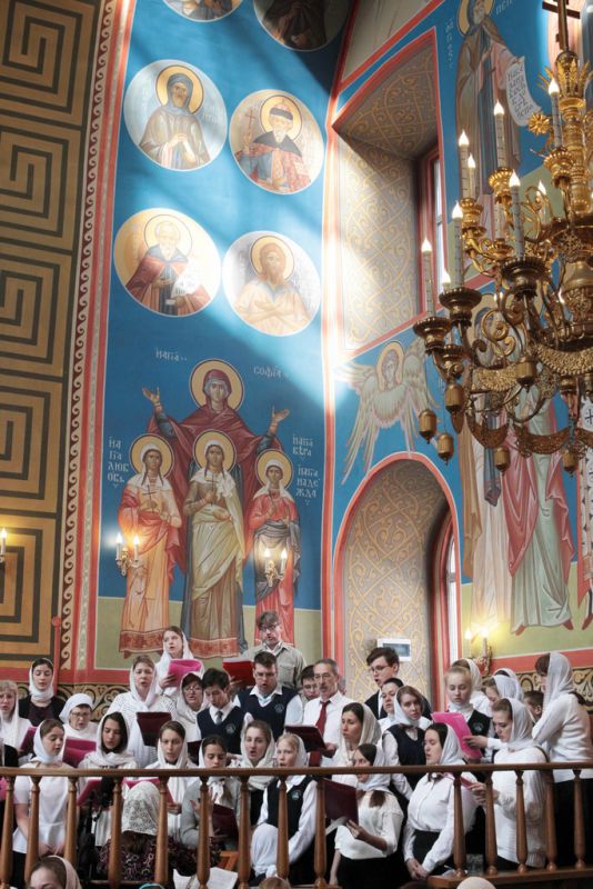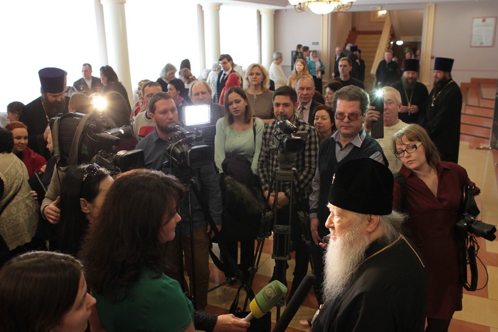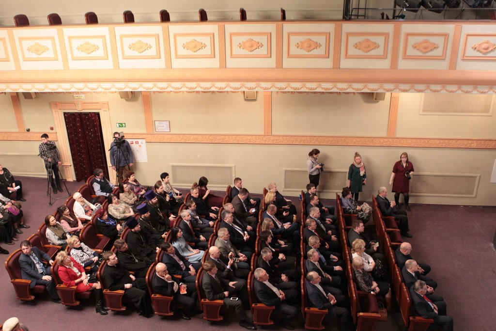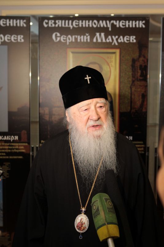Перед началом праздничного концерта митрополит Ювеналий обратился к собравшимся с архипастырским словом: «Дорогой Игорь Петрович, дорогой отец Марк, дорогие участники нашей встречи. Христос воскресе! Воистину воскресе! Хотя сегодня рабочий день, Церковь продолжает праздновать Пасху Господню. Приятно, что вы с нами разделяете этот праздник. Вам, может быть, не понятно было, почему в фойе находится выставка новомучеников в праздник Пасхи. Я имел в свое время определенное отношение к прославлению новомучеников, потому что четверть века возглавлял комиссию Русской Православной Церкви по канонизации святых. Через нее прошли дела тысяч людей: наших православных священнослужителей, монашествующих, мирян, которых Церковь причислила к лику святых. Сегодня уже говорилось, что в этом году исполняется сто лет событиям, которые происходили в нашей стране с начала 1917 года. Когда мы рассматривали жизнь и смерть наших новомучеников, мы могли по совести свидетельствовать, что это были патриоты России, что это были истинно верующие во Христа люди. Но судьба так сложилась, что они встретились с требованием или отречься от Христа, или принять мученическую смерть. Все, кого вы видели здесь, на этой выставке, — это люди, которые ни в чем себя не запятнали ни перед государством, ни перед народом, ни перед Церковью, но предпочли мученическую смерть измене Христу. Я сегодня совершил Литургию в Богоявленском соборе и поклонился мощам священномученика Константина Богородского. Это был светлейший человек, педагог, пастырь. Трудно без слез вспоминать, как он был заживо погребен