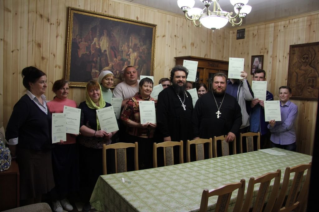 28 мая в помещении воскресной школы Иоанно-Богословского храма г. Ликино-Дулево состоялось итоговое занятие Библейско-богословских курсов Ликино-Дулевского благочиния. Свидетельства об окончании курсов выпускникам вручили благочинный Ликино-Дулевского церковного округа священник Антоний Рыжаков и преподаватели курсов.