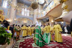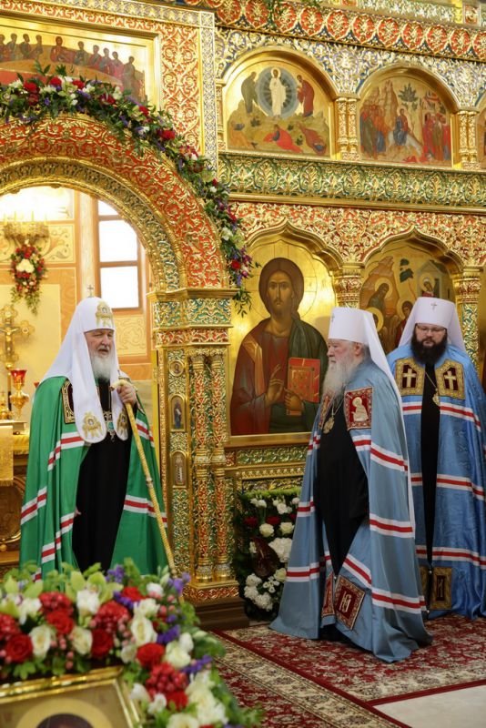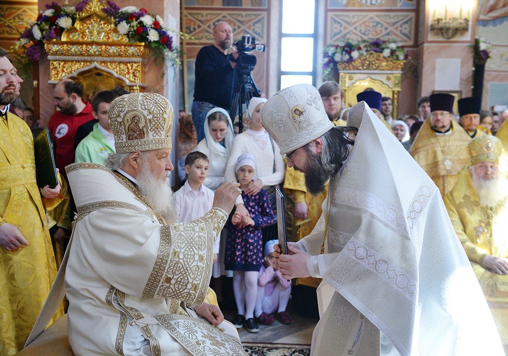 В Троицком храме Святейший Патриарх Кирилл совершил Божественную литургию и возглавил хиротонию архимандрита Мелетия (Павлюченкова) во епископа Рославльского и Десногорского.