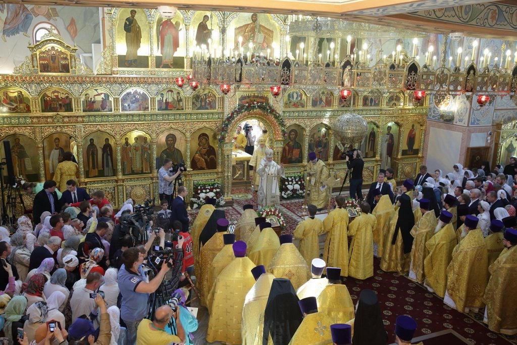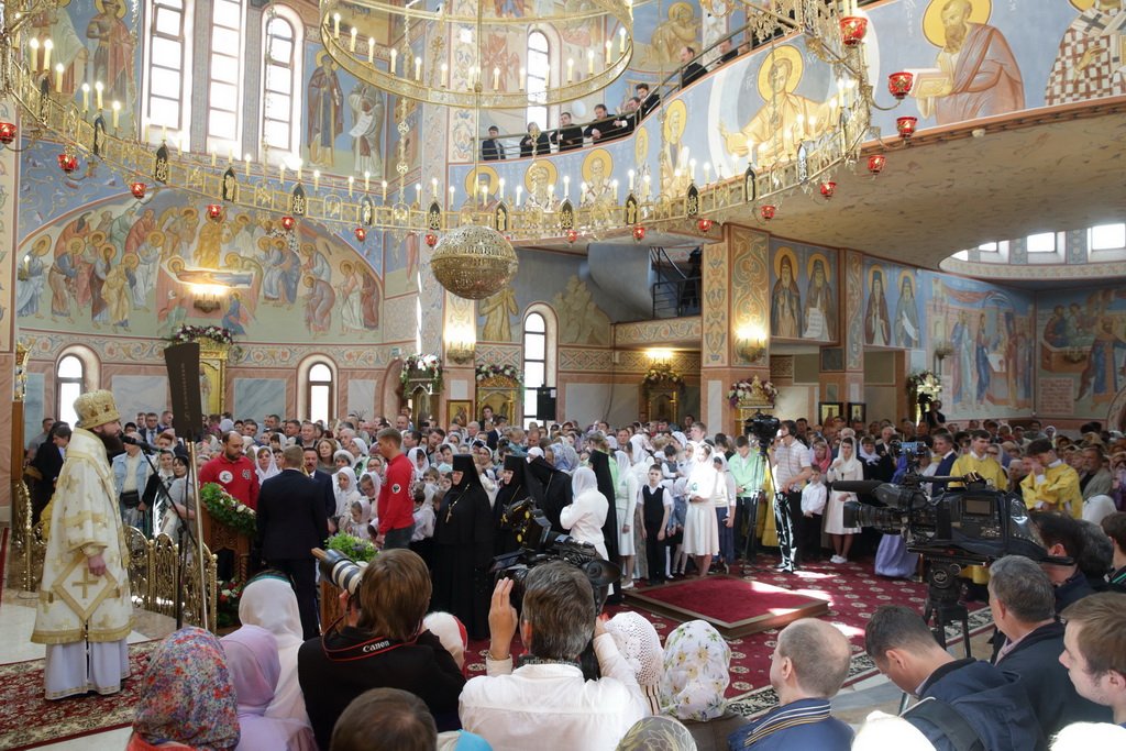 На телеканале «Союз» шла прямая трансляция Патриаршего богослужения. Богослужение также транслировалось на экран, установленный на стилобате Троицкого храма.