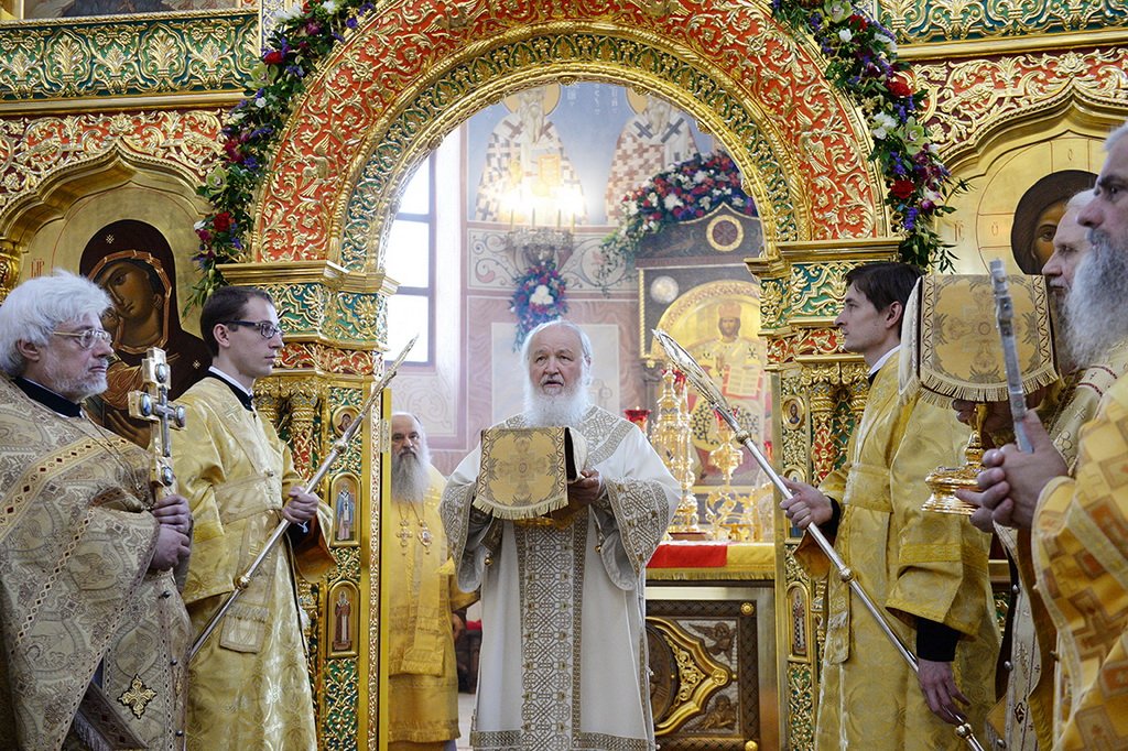 После сугубой ектении Предстоятель Русской Православной Церкви вознес молитву о мире на Украине.