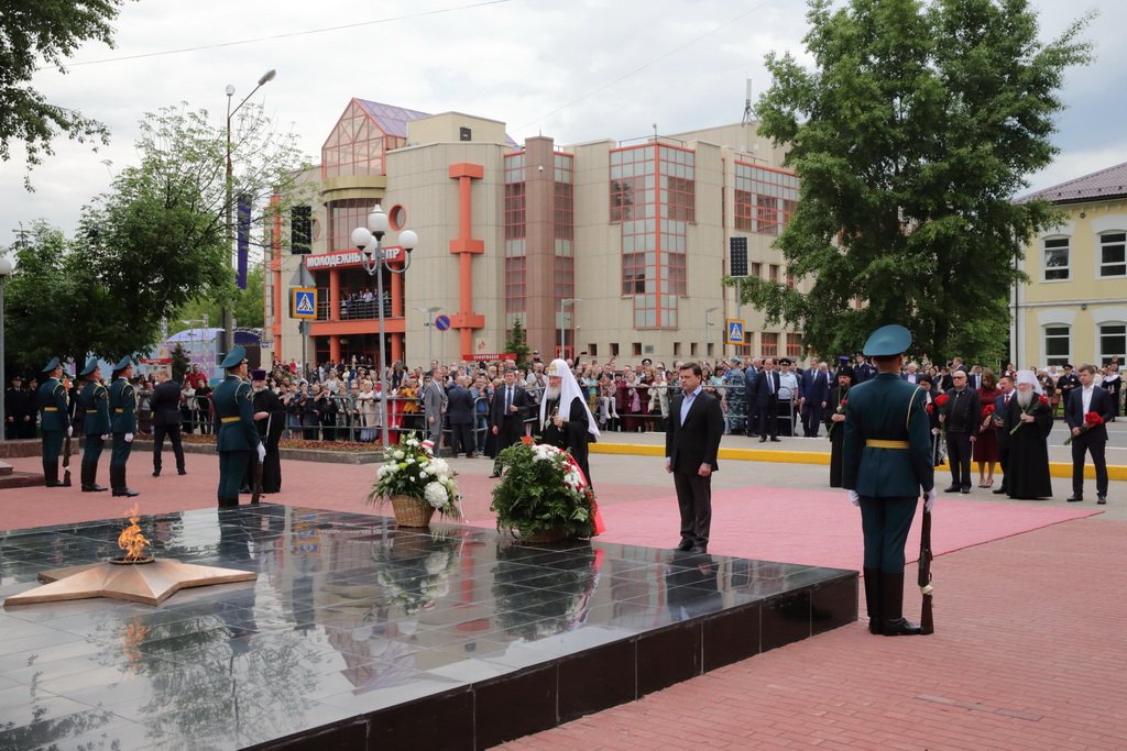 В 1919 году эту землю посещал Ваш святой предшественник Святейший Патриарх Тихон. Тогда здесь не было храмов, и святитель совершил водосвятный молебен в день праздника Казанской иконы Божией Матери в молитвенном доме для тружеников ткацкой фабрики. Великое Патриаршее служение всегда остается знамением для Церкви, и если Святейшему Патриарху Тихону приходилось сохранять то, чем обладала Церковь, то в наше время, Ваше Святейшество, Вы возложили на себя великое служение возродить то, что было отнято, поругано и разрушено.