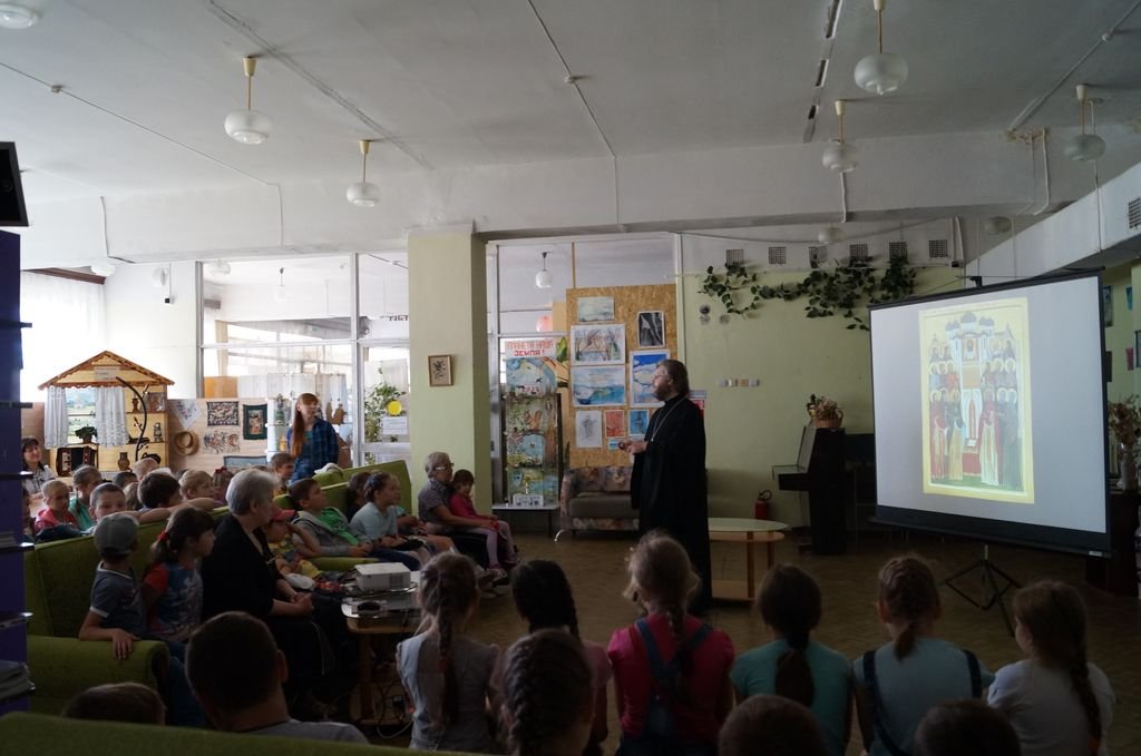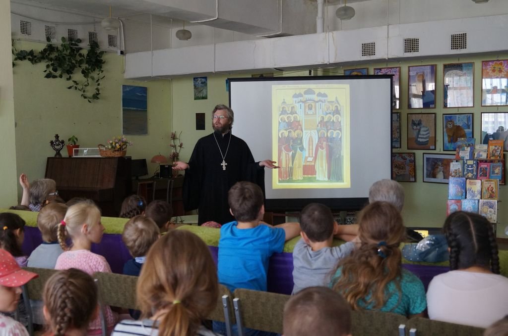 11 июля в Центральной библиотеке г. Шатуры клирик Никольского прихода священник Александр Боярских встретился с детьми из летнего лагеря школы N4. Темой беседы стал рассказ о святых.