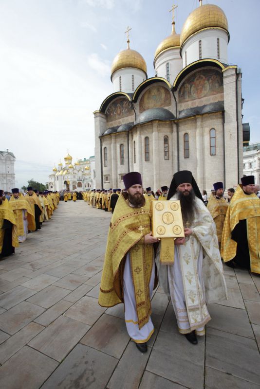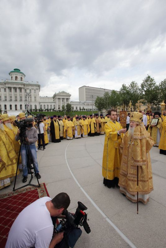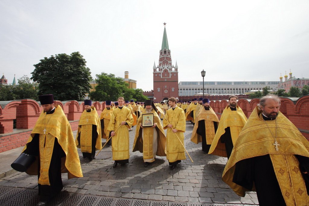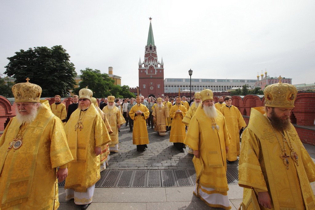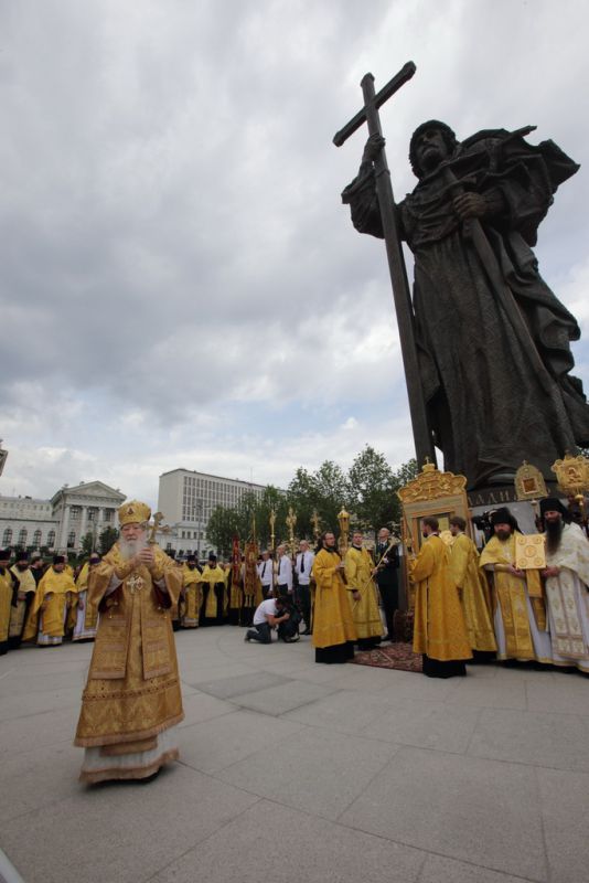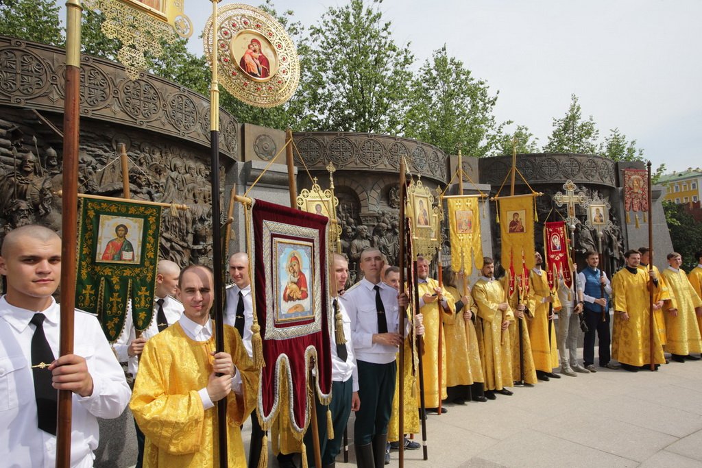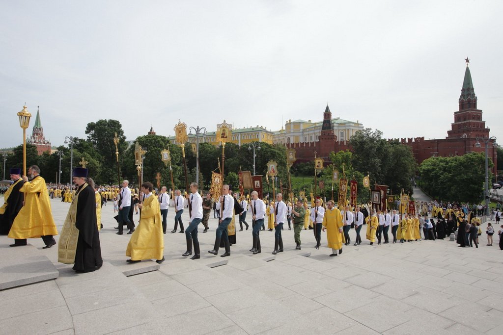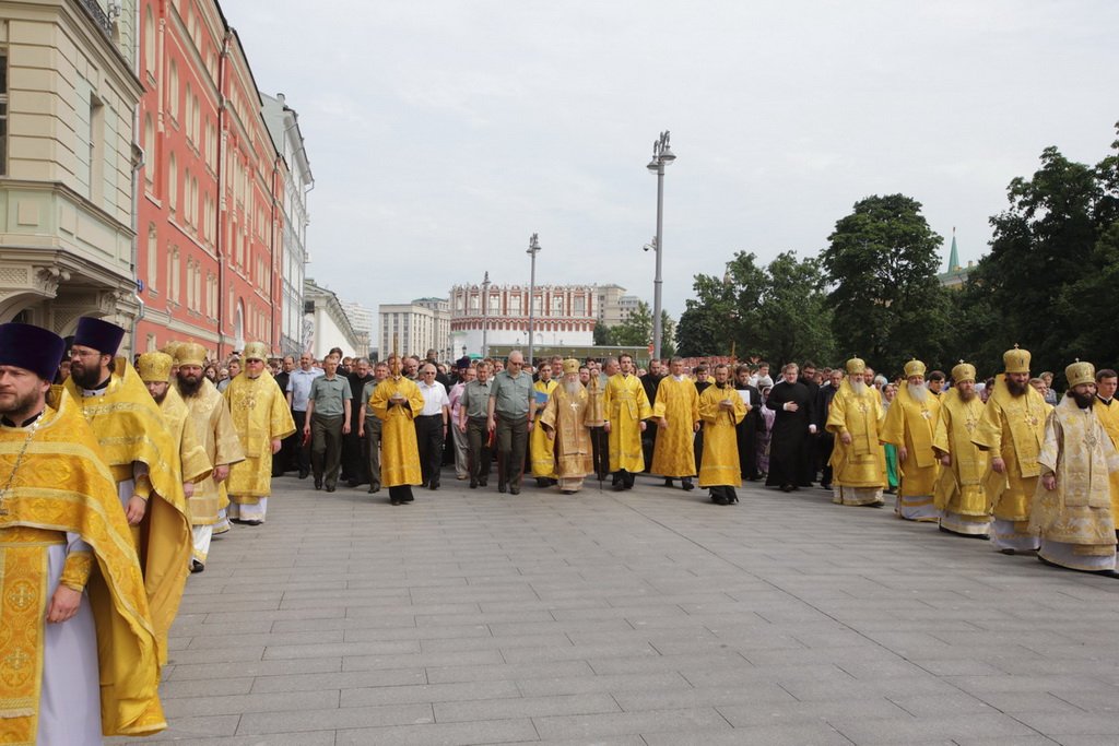 По окончании Литургии митрополит Ювеналий возглавил крестный ход к памятнику равноапостольного князя Владимира на Боровицкой площади. В торжественном шествии приняли участие архипастыри и пастыри города Москвы и Московской области, военнослужащие Росгвардии.