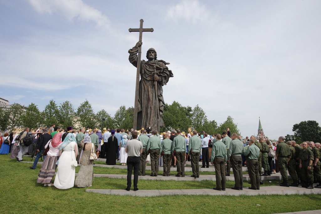 У памятника равноапостольному князю Владимиру был совершен молебен, по окончании которого митрополит Ювеналий обратился к собравшимся с архипастырским словом: «Возлюбленные архипастыри и пастыри, уважаемые представители Росгвардии и Николай Николаевич, дорогие братья и сестры! По благословению Святейшего Патриарха Московского и всея Руси Кирилла мы сегодня совершили Божественную литургию в древнем Патриаршем кафедральном соборе в стенах Московского Кремля. Мы завершаем эту молитву у памятника святому равноапостольному великому князю Владимиру. Мы горячо молились о духовном наследии великого крестителя Руси, о нашей Православной Церкви и ее народах. Сегодня Росгвардия также отмечает день своего небесного покровителя. Мы рады, что молились и участвовали в Таинствах Церкви вместе с защитниками Отечества — военнослужащими. Я горячо и сердечно поздравляю всех вас с нашим национальным праздником, именинников — с днем тезоименитства, и призываю на вас Божие благословение и благословение великого крестителя Руси, святого равноапостольного князя Владимира. Пусть Господь хранит всех нас на многая и благая лета».