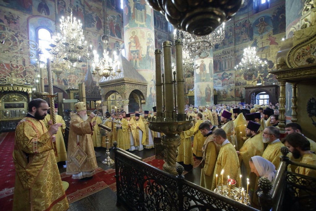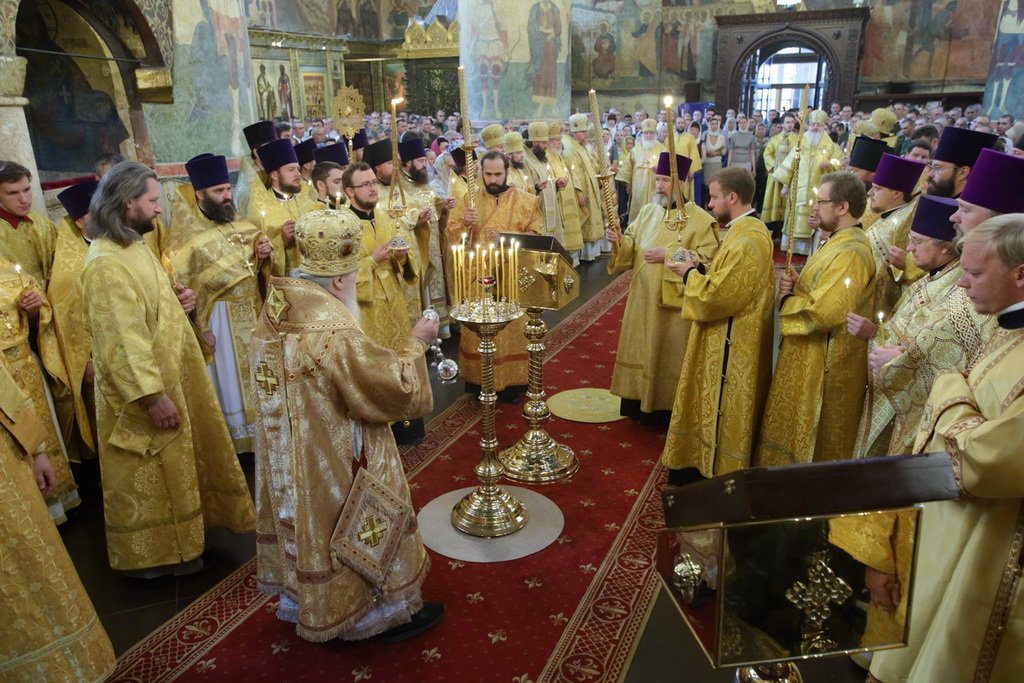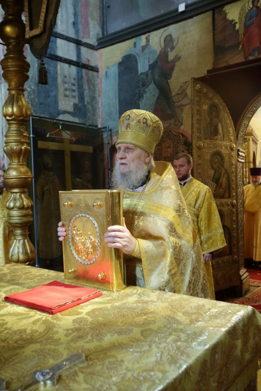 Его Высокопреосвященству сослужили викарии Святейшего Патриарха Московского и всея Руси Кирилла: митрополит Истринский Арсений, епископы Воскресенский Савва, Подольский Тихон, Дмитровский Феофилакт, Бронницкий Парамон, Люберецкий Серафим, викарии Московской епархии: епископы Видновский Тихон, Серпуховской Роман, Балашихинский Николай, Зарайский Константин, Луховицкий Петр, секретарь Патриарха Московского и всея Руси по городу Москве протопресвитер Владимир Диваков, благочинные и духовенство Московской епархии.