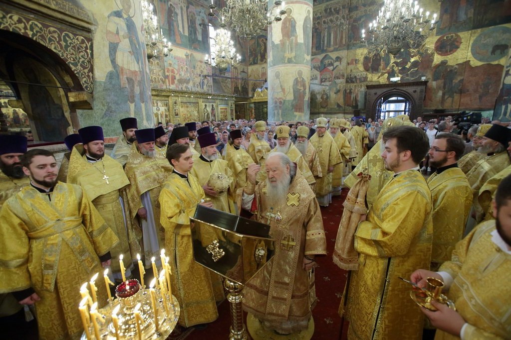 Богослужебные песнопения исполнял Хор духовенства Московской епархии под управлением священника Сергия Голева.