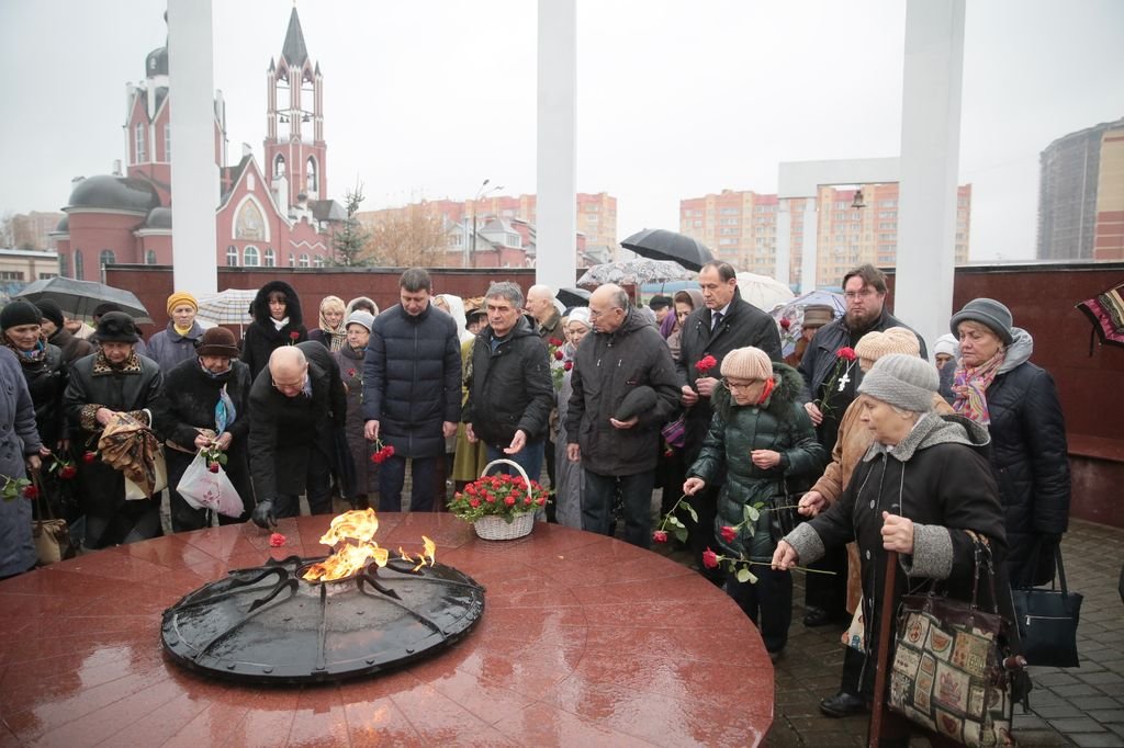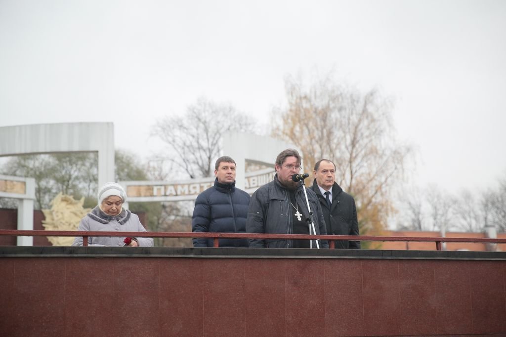 30 октября в Троицком соборе г. Щелково ключарь собора священник Александр Амелин совершил панихиду по невинно убиенным жертвам политических репрессий. На Аллее памяти прошел митинг, на котором к собравшимся обратились заместитель главы администрации Щелковского района Ю.Н. Радионов, заместитель председателя совета депутатов Щелковского района С.Г. Игнатенко, председатель щелковского отделения Московской областной общественно-благотворительной организации инвалидов и жертв политических репрессий «Надежда» В.И. Лесникова, ключарь Троицкого собора г. Щелково священник Александр Амелин.