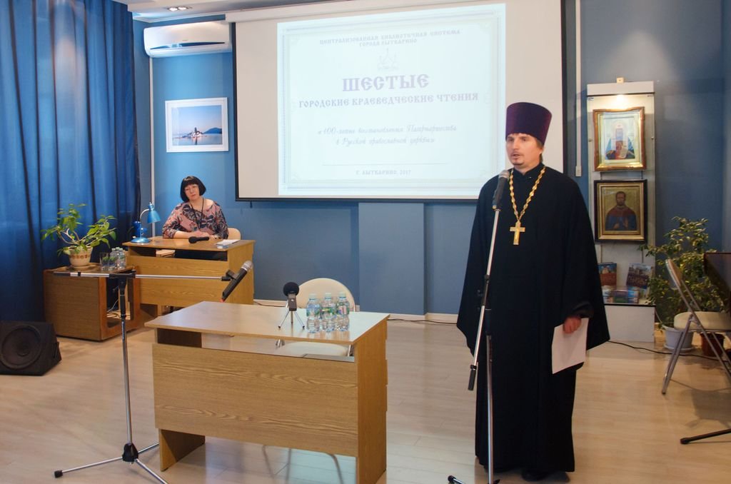 5 декабря в центральной городской библиотеке г. Лыткарино состоялись VI городские краеведческие чтения, посвященные духовно-нравственному воспитанию подрастающего поколения и памяти преподобномученика Гавриила Лыткаринского и 100-летию восстановления Патриаршества в Русской Православной Церкви. Чтения открыл ответственный за организованный православный отдых, паломничество и православный туризм в Люберецком благочинии священник Сергий Жигало. В ходе проведения чтений с тематическими докладами выступили: настоятель Казанского храма села Петровское Шатурского района священник Александр Ионов («Восстановление Патриаршества в Русской Православной Церкви и избрание святого Патриарха Тихона»); кандидат исторических наук К. В. Ковырзин («Поместный Собор 1917-1918 гг. и начало периода антицерковных гонений»); член Союза художников города Москвы, А. Р. Антонов («О жизни и трудах священномученика Владимира (Богоявленского) и его роли в становлении Богоявленского собора в Дорогомилове»). Во время проведения чтений состоялись также премьера документального фильма «К 20-летию лыткаринского сестричества» и концерт вокального отделения детской музыкальной школы города Лыткарино.