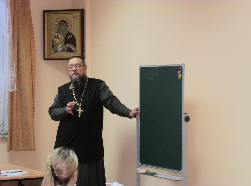 14 декабря в воскресной школе Крестовоздвиженского храма прошел семинар для педагогов города Орехово-Зуево – преподавателей истории и «Основ православной культуры». Семинар провел настоятель храма, доцент Православного Свято-Тихоновского гуманитарного университета священник Михаил Таганов, который рассказал о философских и богословских аспектах понятия «нравственные ценности».