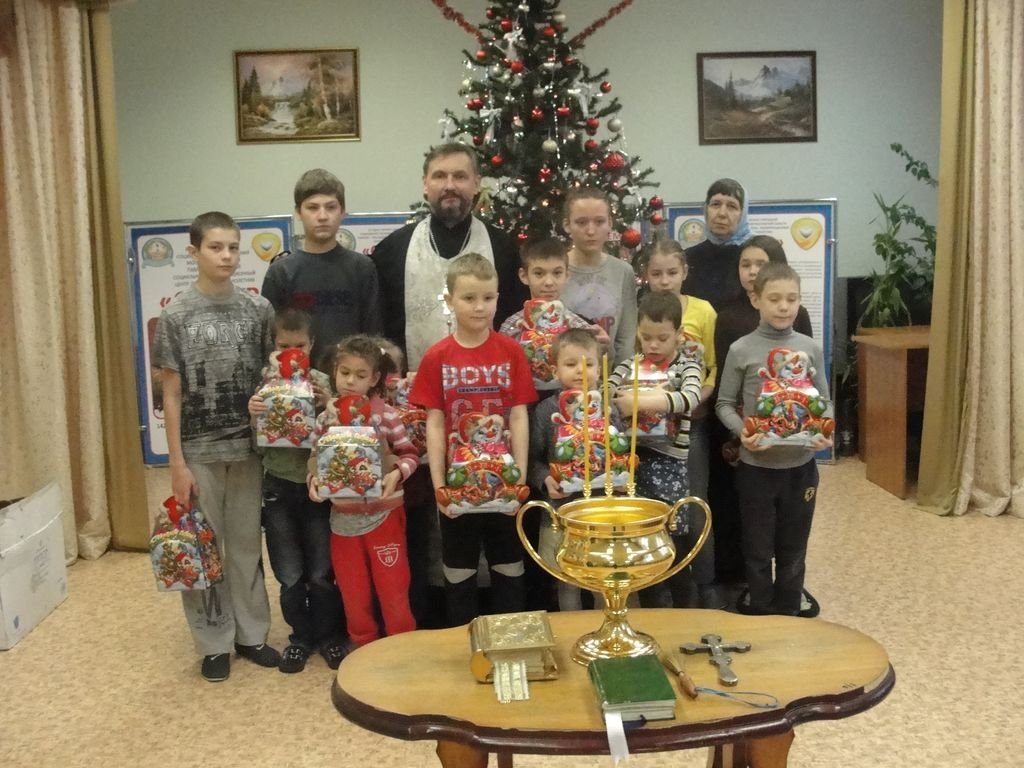 14 января прихожане и дети воскресной школы Богородицерождественского храма деревни Саурово посетили детский социально-реабилитационный центр «Спектр» г. Павловский Посад. Клирик храма священник Павел Скворцов совершил водосвятный молебен и вручил детям подарки.