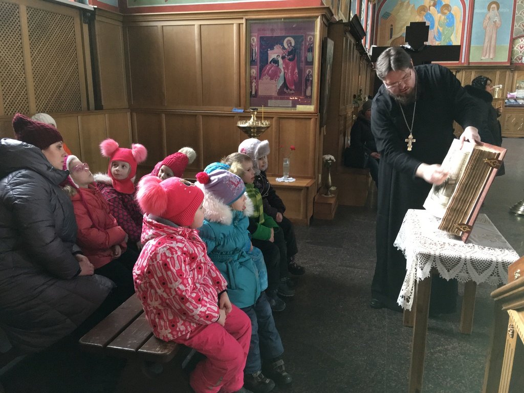 28 февраля в Троицком соборе города Щелково прошла экскурсия для воспитанников детского сада № 57 «Светлячок», которую провел ключарь собора священник Александр Амелин. Отец Александр рассказал ребятам об устройстве храма и показал старинное Евангелие 1735 года.