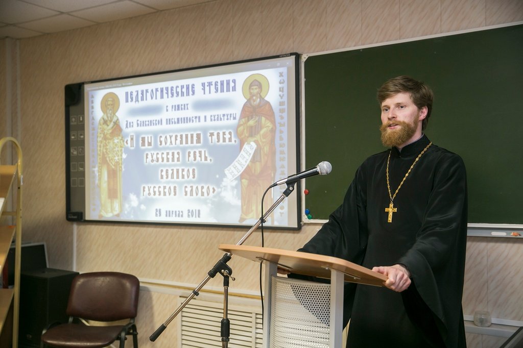 26 апреля в учебно-методическом центре комитета по вопросам образования Щелковского района прошли педагогические чтения «И мы сохраним тебя, русская речь, великое русское слово». Участниками чтений стали педагоги дошкольных образовательных учреждений, общеобразовательных школ района, библиотекари и духовенство Щелковского и Лосино-Петровского благочиний. Сотрудниками районной библиотеки семейного чтения была подготовлена книжная выставка «Свет жизни - слово Божие». С приветственным словом к собравшимся обратились председатель комитета по образованию Щелковского района Г.Б. Поляковский, помощник благочинного церквей Щелковского округа священник Димитрий Поповский и помощник благочинного церквей Лосино-Петровского округа священник Валерий Очеретный. Отец Димитрий вручил благословенную грамоту митрополита Ювеналия директору учебно-методического образовательного центра Щелковского района В.А. Зерковой, благодарственную грамоту митрополита Ювеналия – руководителю районного методического объединения учителей «Основ православной культуры» и «Духовного краеведения Подмосковья» В.И. Ефименко, благодарственные грамоты Щелковского благочиния – педагогам г. Щелково и Щелковского района. Педагогические чтения украсило выступление творческих коллективов Щелковских школ.