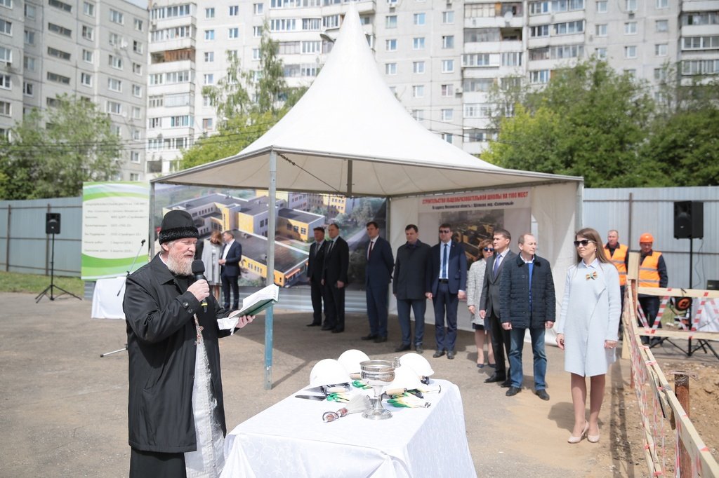 Днем в этот же день отец благочинный принял участие в торжественной церемонии закладки капсулы времени в основание строящейся школы в микрорайоне Солнечном г. Щелкова. В капсулу было вложено послание потомкам и несколько писем от школьников.