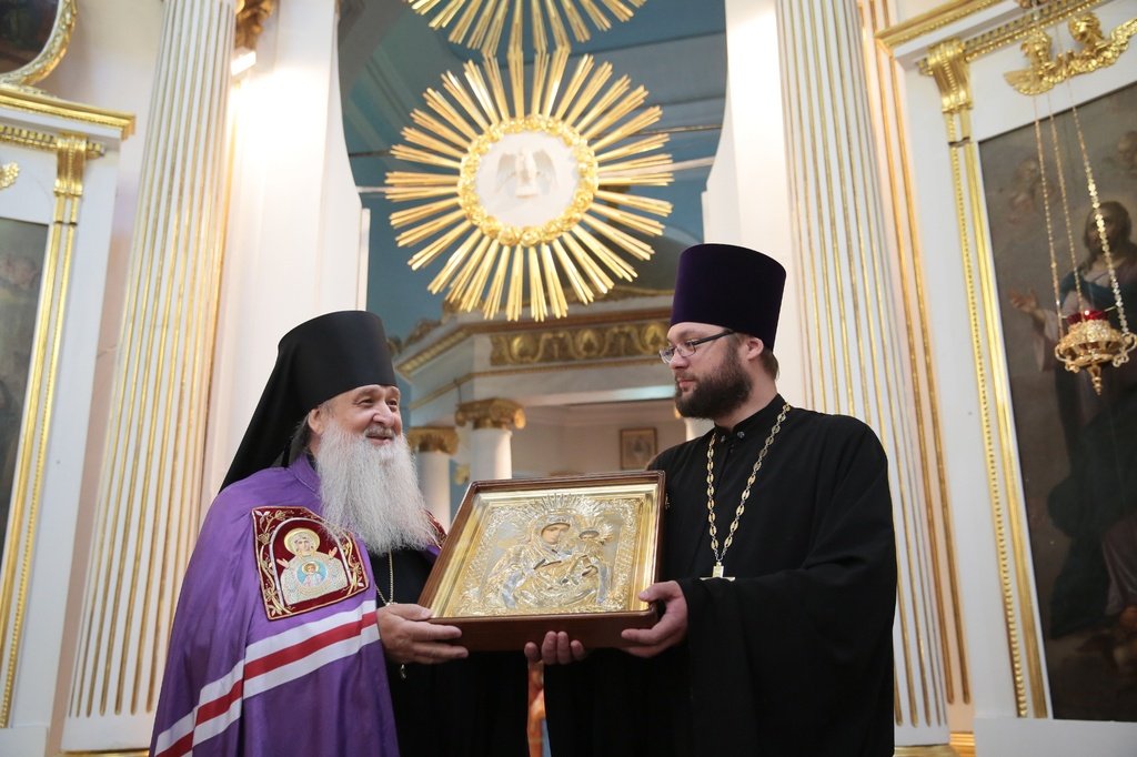 В свою очередь, отец благочинный поблагодарил Владыку за архипастырский визит, а настоятель храма священник Иоанн Солнцев преподнес епископу Роману на молитвенную память образ Смоленской иконы Божией Матери.