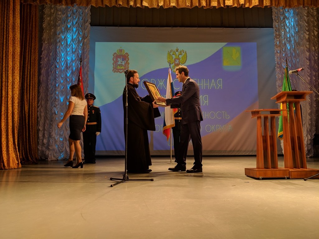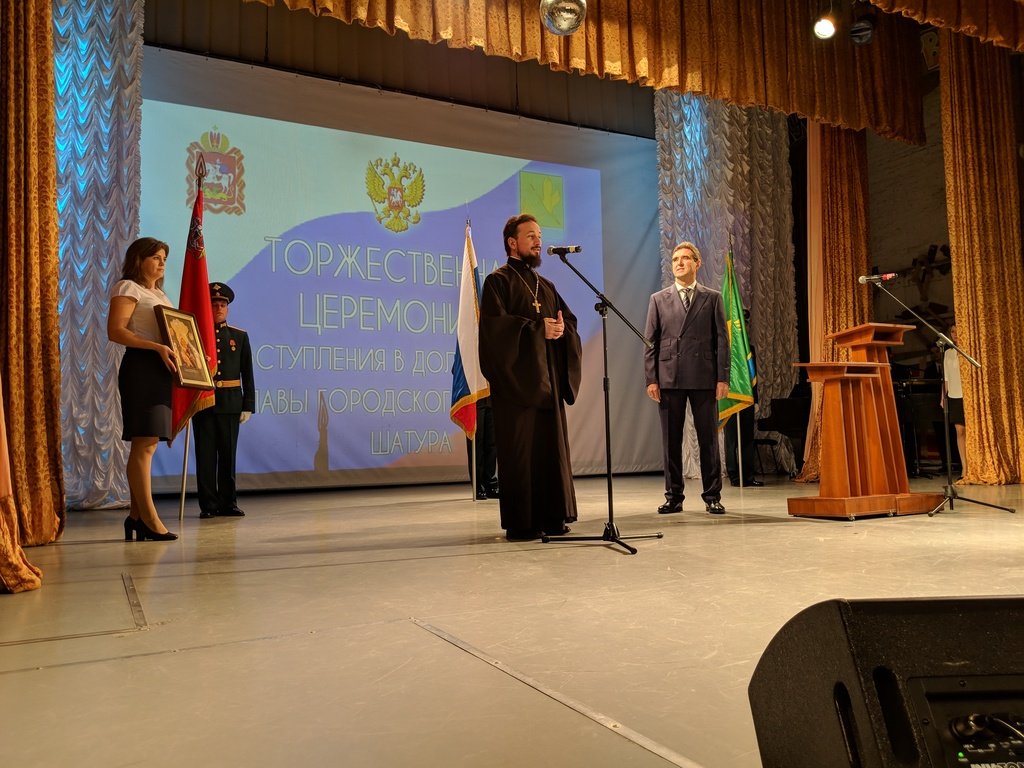 22 октября в доме культуры им. Нариманова г. Шатуры прошла церемония вступления в должность главы городского округа Шатура Андрея Келлера. На торжестве присутствовал От лица духовенства избранного главу поздравил благочинный Шатурского церковного округа священник Владислав Решетников.