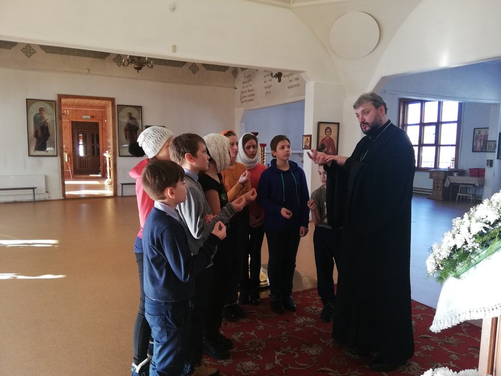 14 февраля настоятель Казанского храма села Петровское священник Михаил Цыцаркин провел экскурсию для учеников 5-го класса общеобразовательной школы деревни Левошево. Отец Михаил рассказал детям об устройстве храма, о христианском вероучении, и о жизни и подвиге новомучеников и исповедников Шатурских.