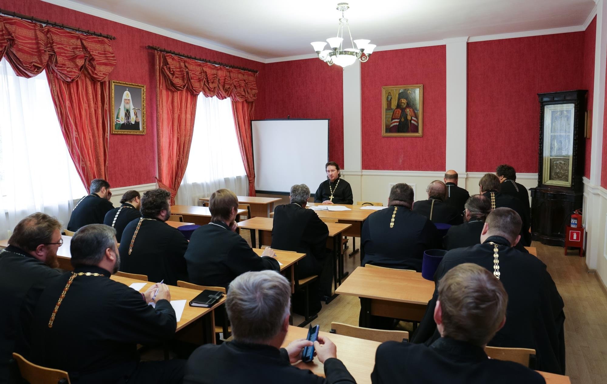 11 октября в административном здании Богородицерождественского собора г. Орехово-Зуево состоялся Епархиальный семинар по каноническим вопросам. Семинар для духовенства Орехово-Зуевского и Ликино-Дулевского благочиний провел юрист Московской епархии иеромонах Лазарь (Беломоин). На заседании присутствовали благочинные Орехово-Зуевского и Ликино-Дулевского церковных округов протоиерей Андрей Коробков священник Антоний Рыжаков и духовенство благочиний. В ходе семинара были рассмотрены различные канонические вопросы и пути их решения.