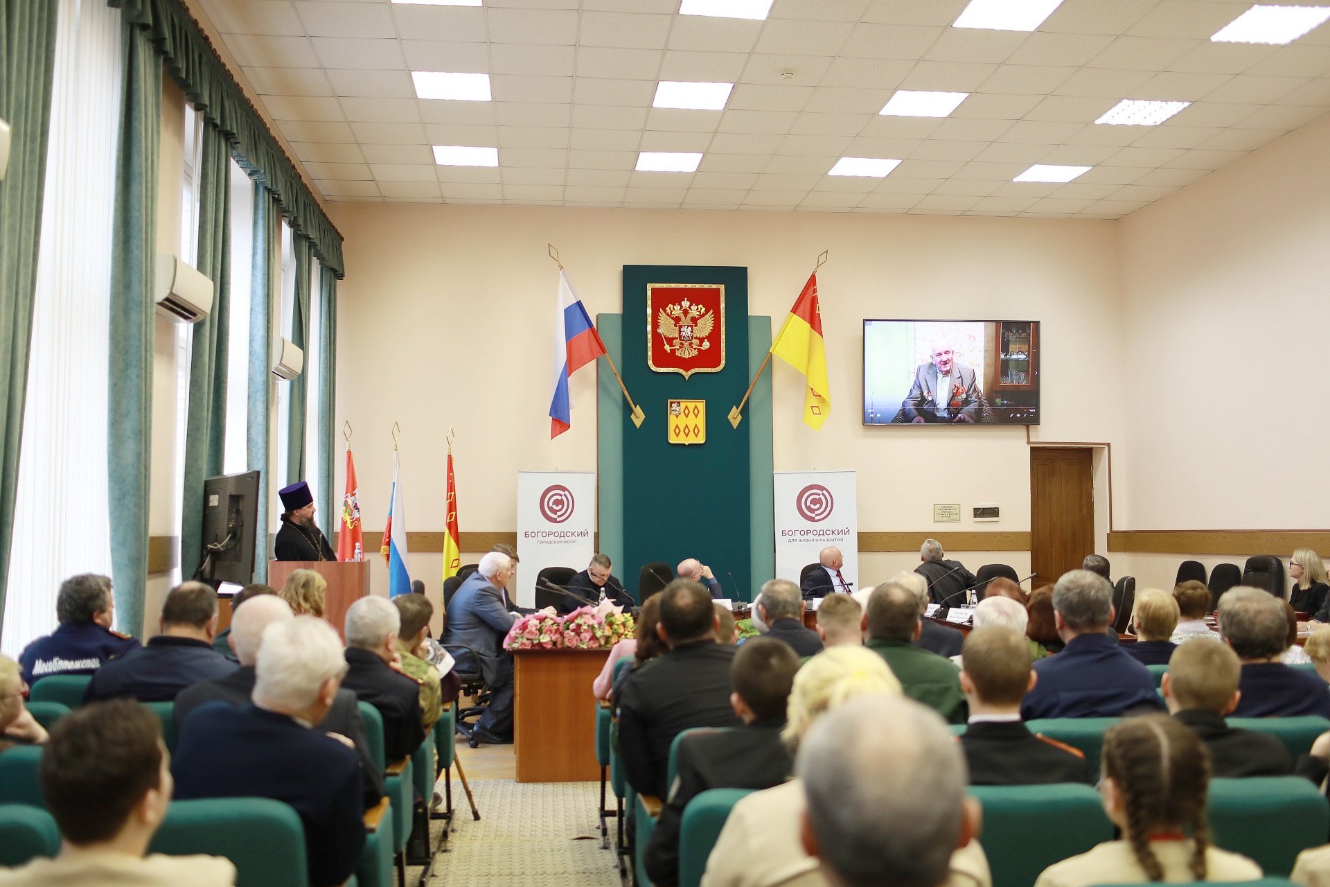 11 марта в администрации Богородского городского округа состоялось заседание круглого стола, посвященное празднованию 75-летия Победы. В ходе заседания, которое возглавил заместитель главы Богородского городского округа Сергей Пастухов, были подведены промежуточные итоги подготовки юбилейных мероприятий. Ветераны Великой Отечественной войны и труженики тыла были награждены медалью «75 лет Победы в Великой Отечественной войне». В работе круглого стола принял участие благочинный церквей Богородского округа протоиерей Марк Ермолаев, который рассказал о проделанной работе и планируемом создании серии видеороликов о ветеранах для распространения в социальных сетях. Вниманию собравшихся был представлен проект одного из таких роликов.