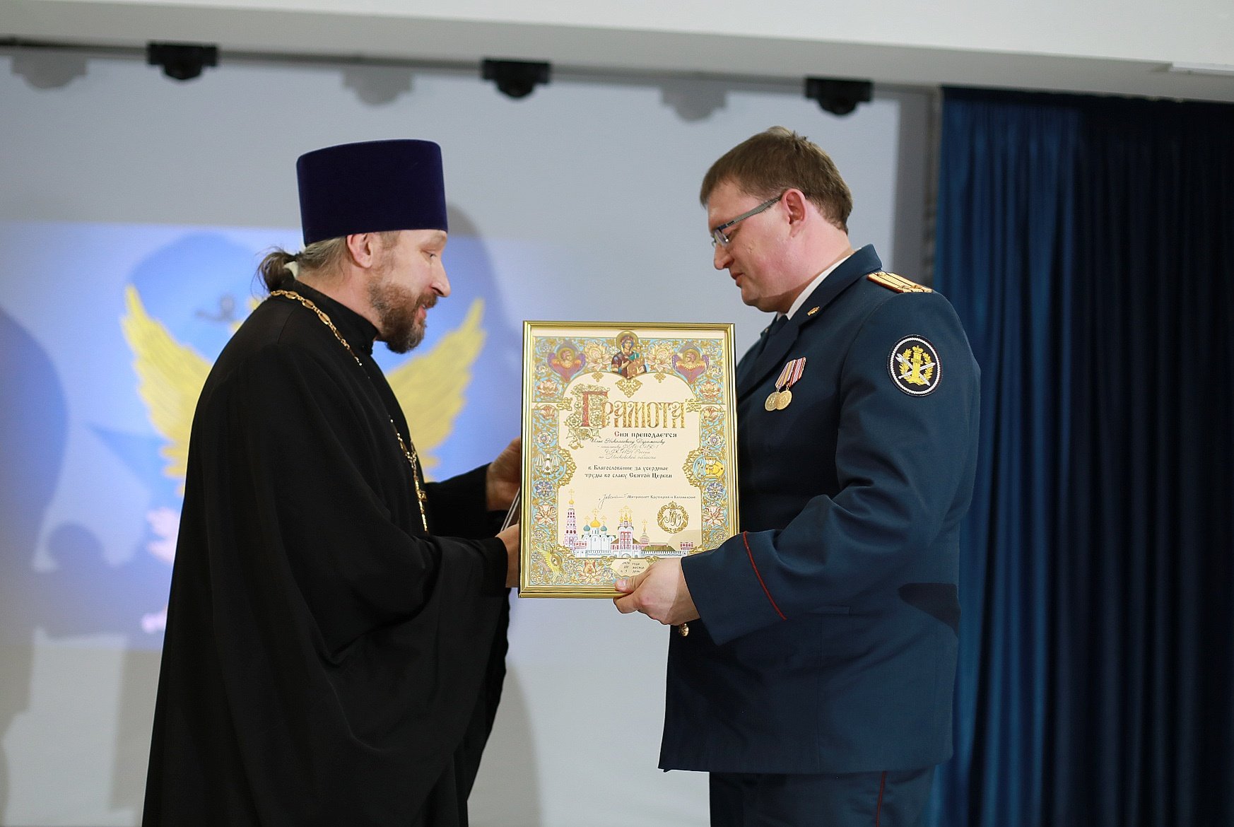 12 марта в ногинском муниципальном центре культуры и искусств имени В. Г. Калиниченко прошло торжественное мероприятие, посвященное Дню работников уголовно-исполнительной системы. На мероприятии присутствовали священнослужители Богородского благочиния, взаимодействующие с учреждениями уголовно-исполнительной системы. Ответственный за тюремное служение в Богородском благочинии священник Алексий Сазонов поздравил присутствующих с профессиональным праздником и вручил Благословенные грамоты митрополита Ювеналия начальнику следственного изолятора № 1 управления Федеральной службы исполнения наказаний по Московской области Илье Парамонову и старшему инспектору изолятора по воспитательной работе с подозреваемыми, обвиняемыми, осужденными Дмитрию Кулишу. Благодарственными письмами управления Федеральной службы исполнения наказаний по Московской области были награждены благочинный церквей Богородского округа протоиерей Марк Ермолаев и священник Алексий Сазонов.